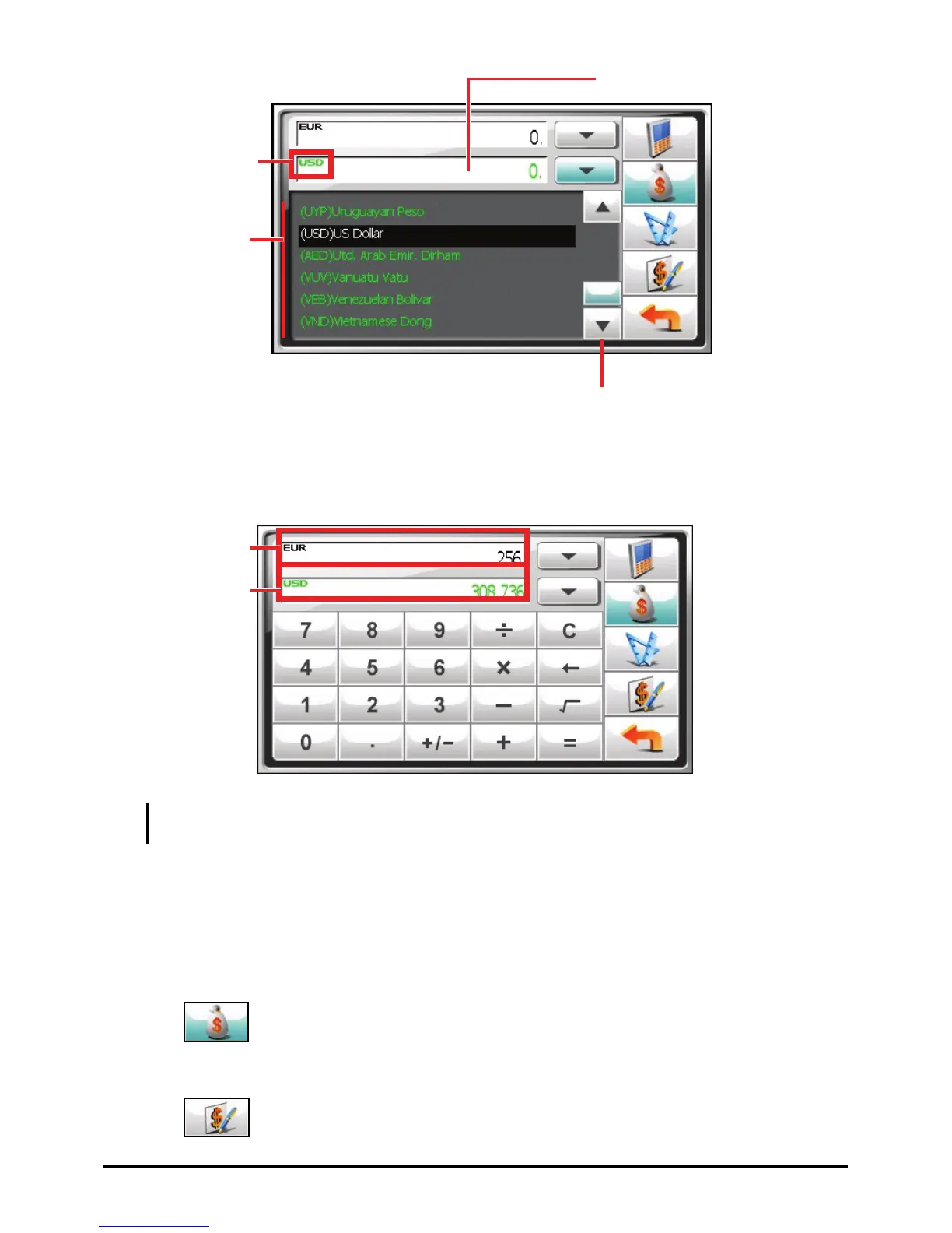 5. Enter the currency value in the input field by tapping the number buttons on