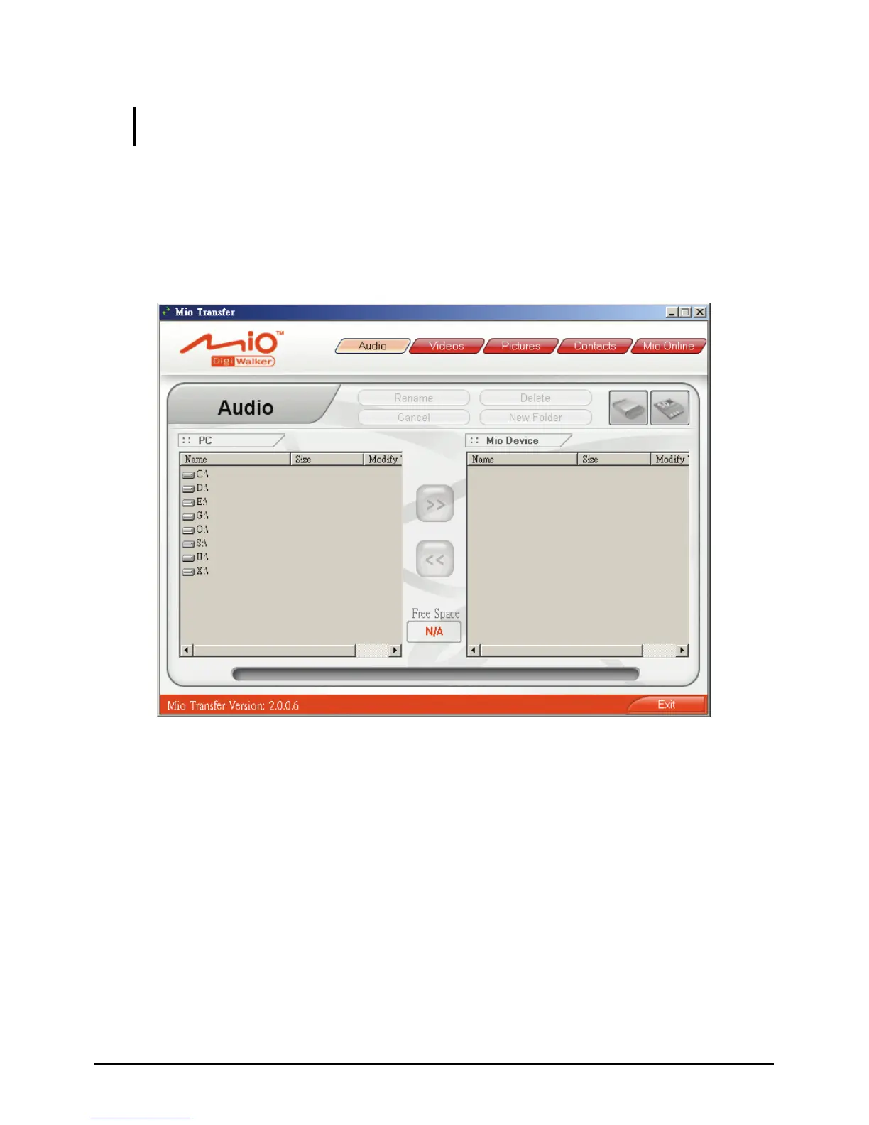 Click MioTransfer icon on the Windows Desktop to start the program. The