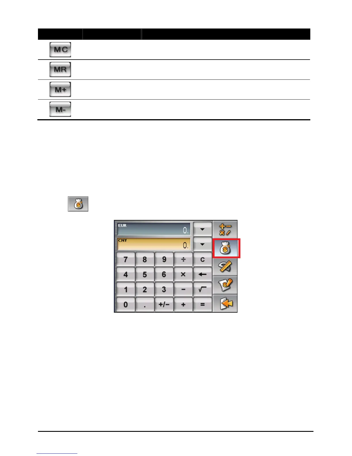 Memory Cancel Clears the value in memory.