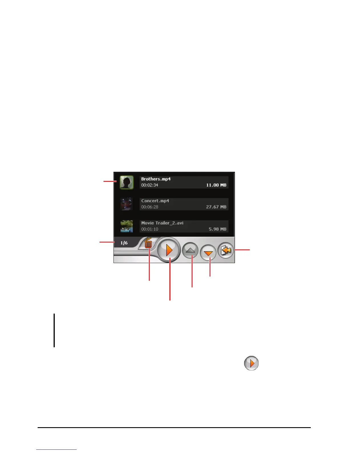 To play a video file, tap the desired file in the list and3. tap . To control the