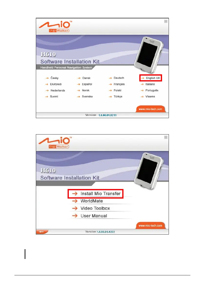 NOTE: If Mio Transfer has already been installed on your computer, clicking Installl Mio