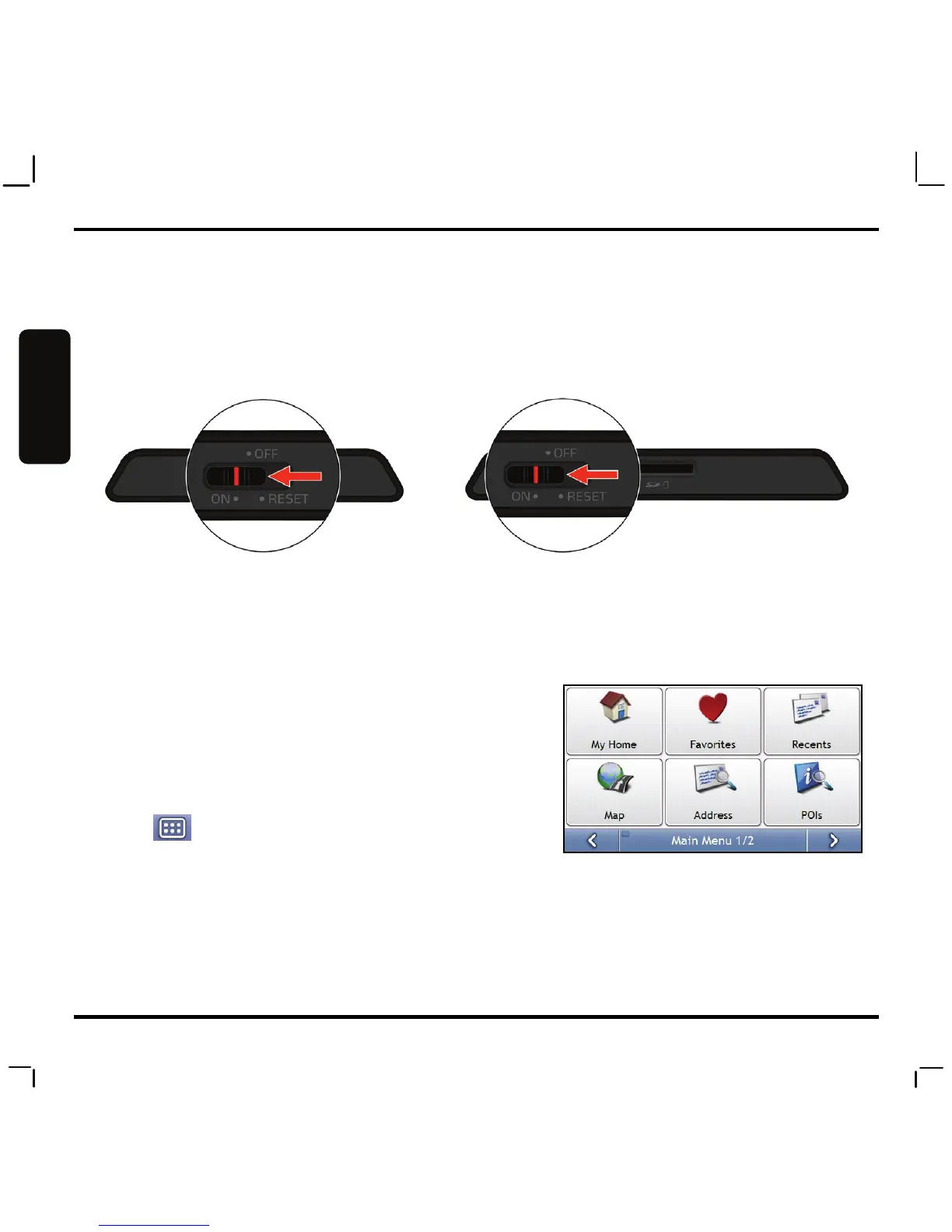 2. For the initial start-up, slide the power switch to the ON position. Your Mio turns on.