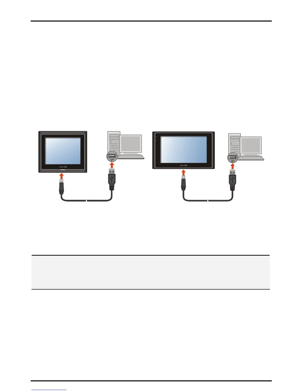 Note: When the Mio is connected to a computer, it is recognized as an external mass storage device. Do not delete any files