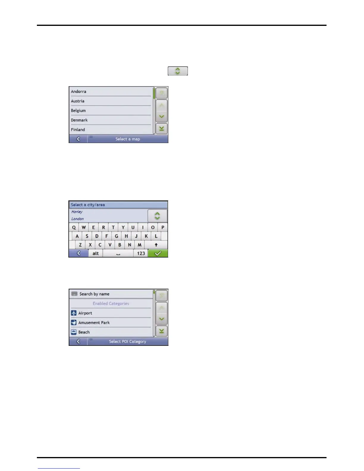 Note: If you only have the maps of one country installed and selected, that country is selected for your destination by default