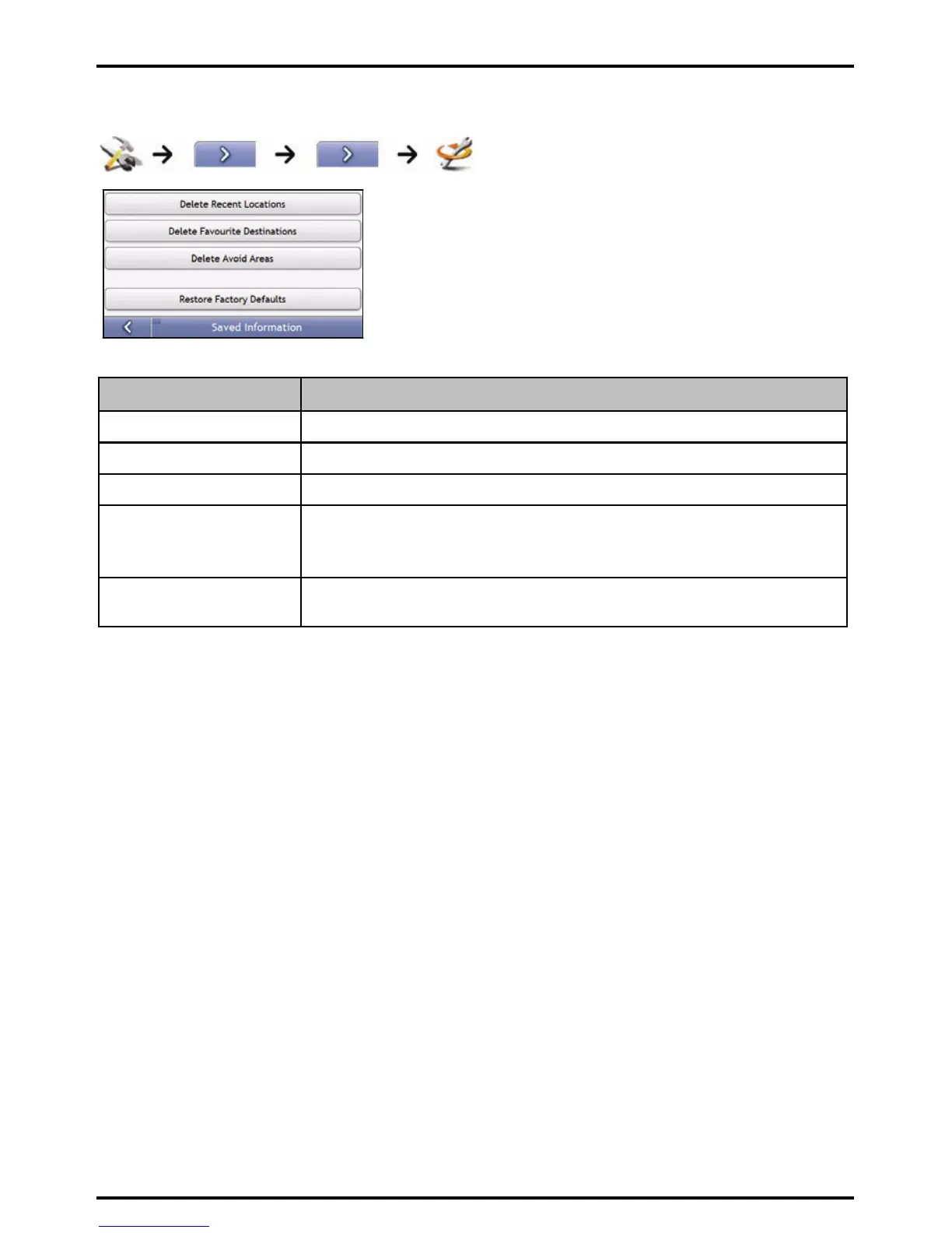 Note: The Restore Factory Defaults option does not delete recent locations or saved