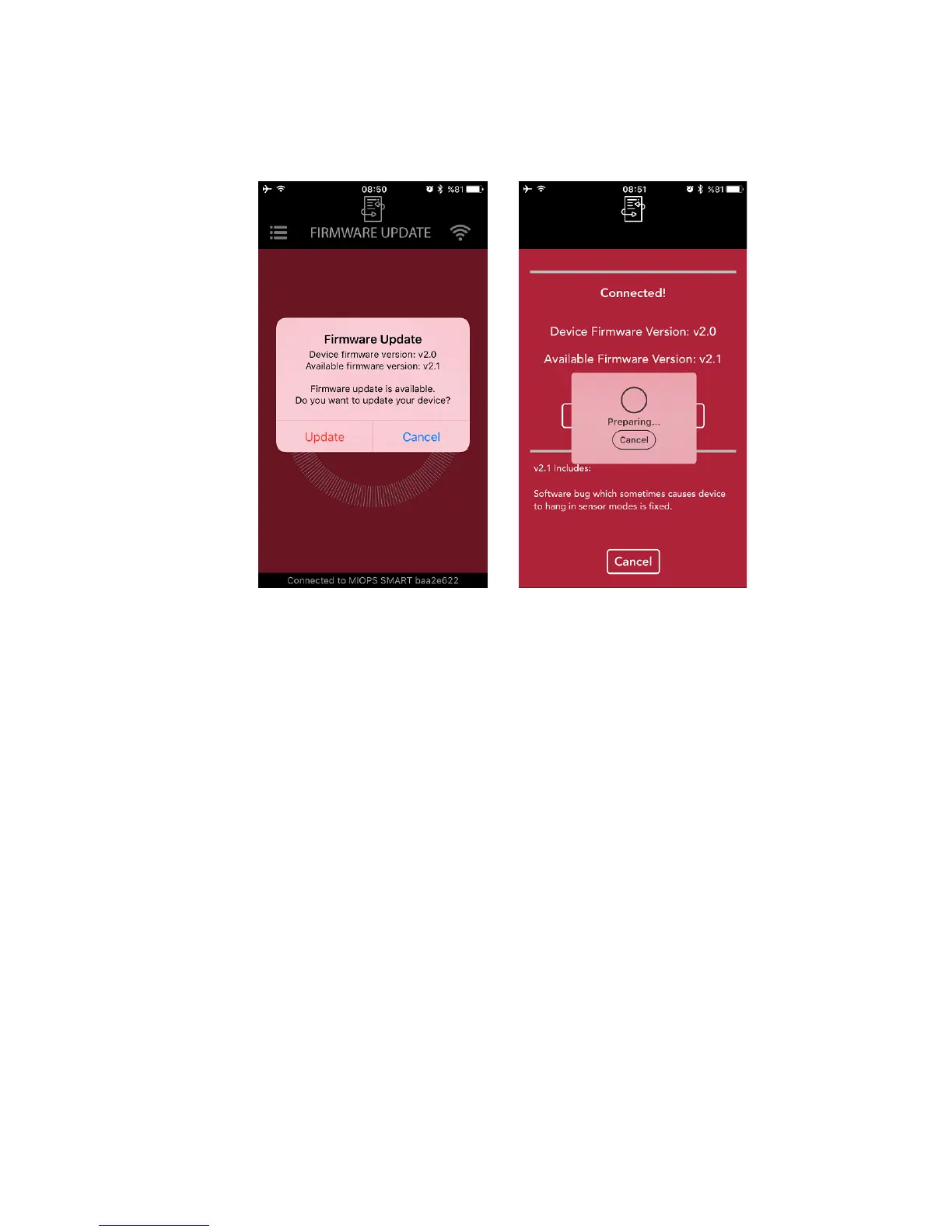 put the new firmware to your MIOPS Smart. It transfers the firmware from