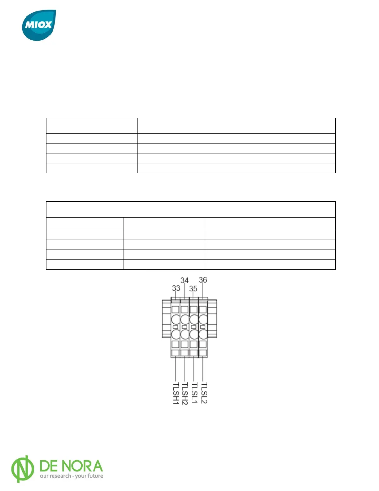 MIOX RIO Series - Tank Level Inputs; Figure 9 Tank Level Connector; Table 1 Tank Level Connector Name and Description; Table 2 Tank Level Status