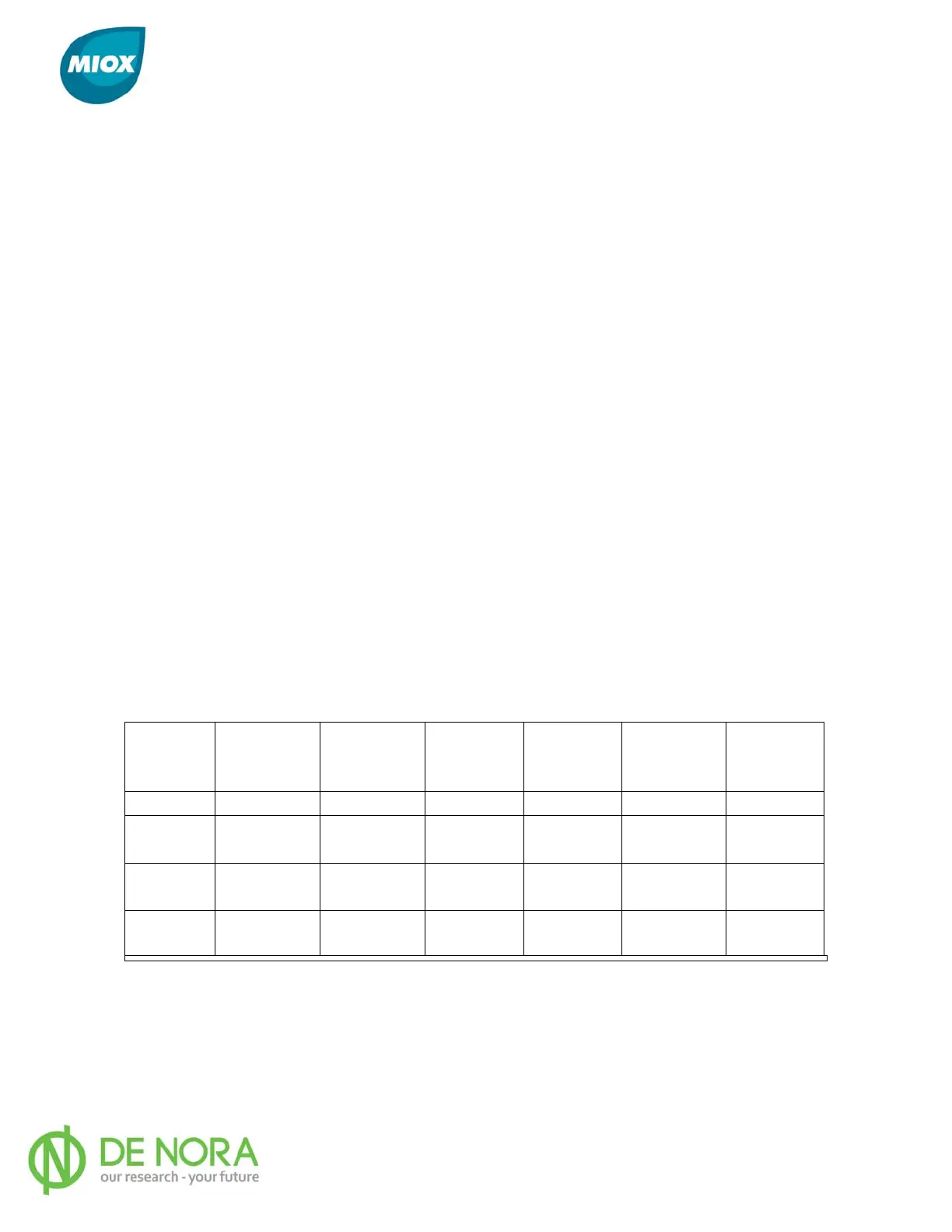 Fill out the table properly and completely. The oxidant solution must be diluted to 1 ppm, 3