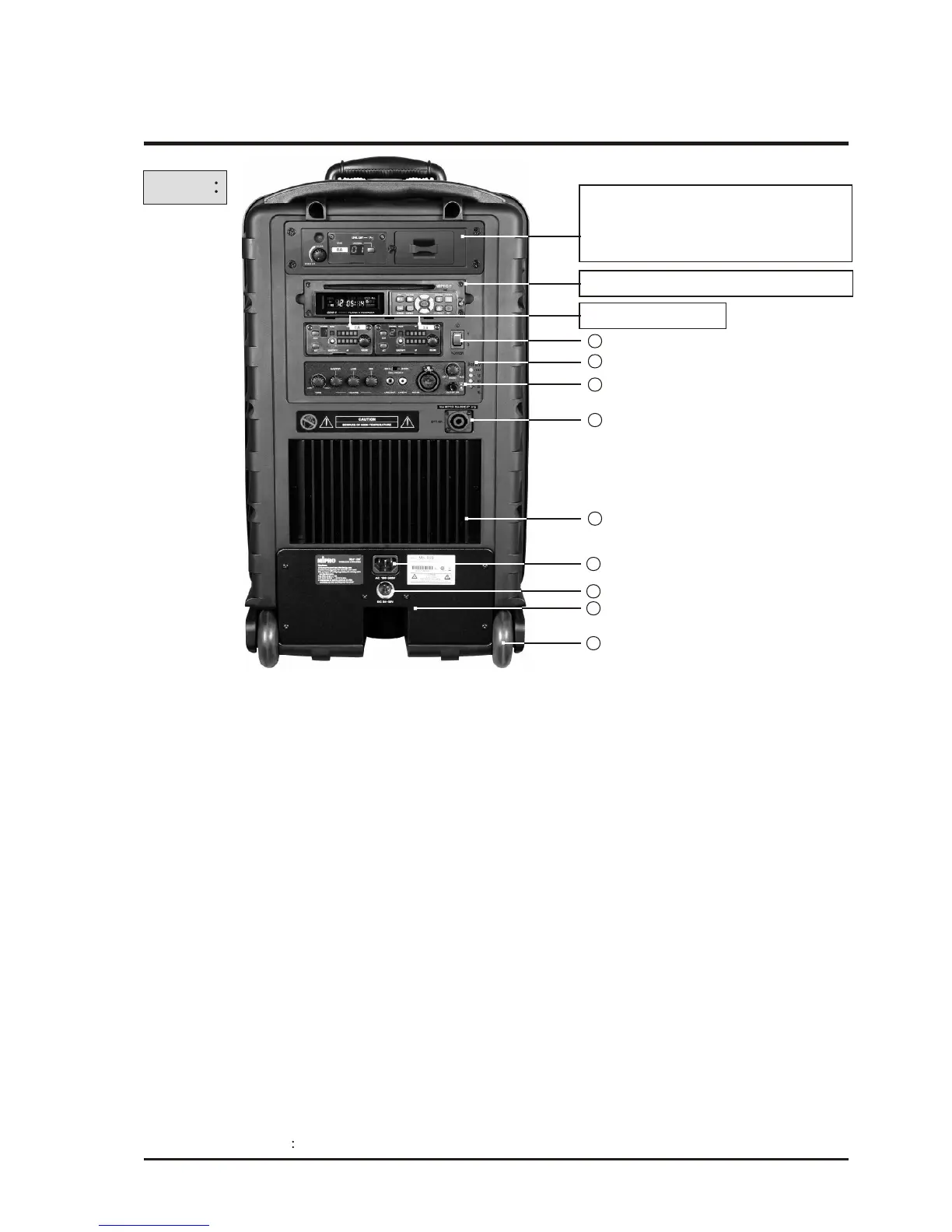 (11) Passive Extension Speaker Scoket : Connects to Passive Extension Speakers.