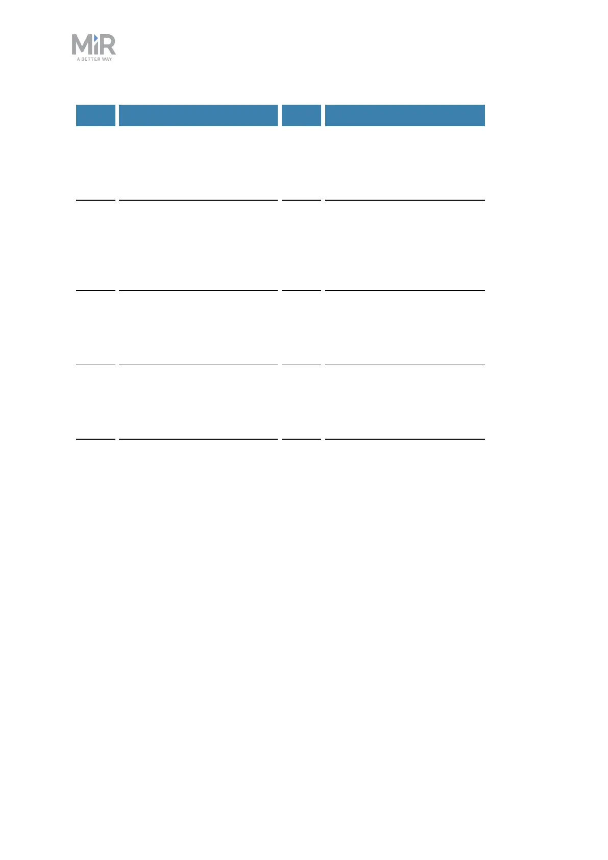 MiR1000 User Guide (en) 12/2020 - v.1.4 ©Copyright 2019-2020: Mobile Industrial Robots A/S. 14