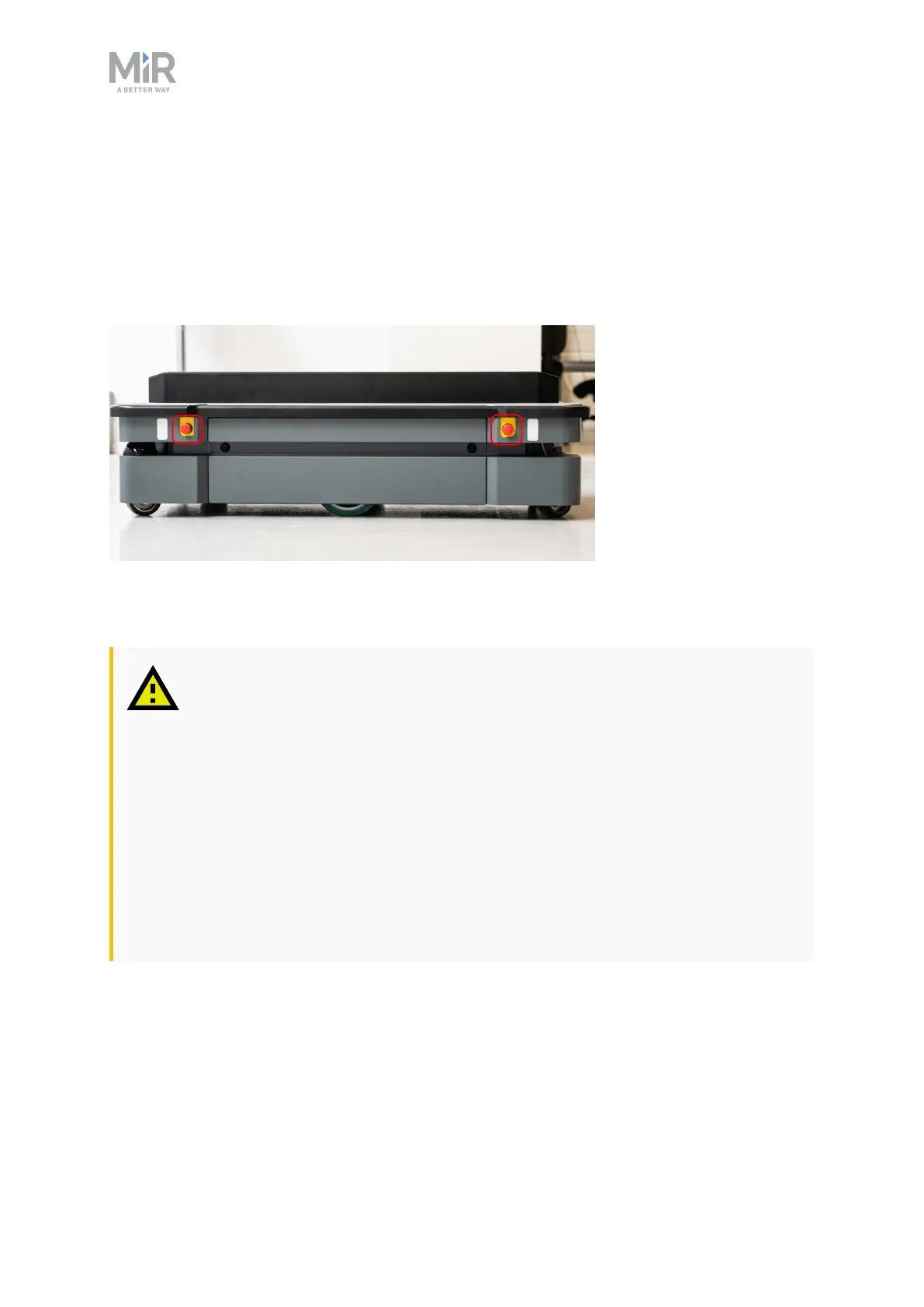Figure 10.1. MiR1000 has four Emergency stop buttons and the option to connect additional Emergency stop