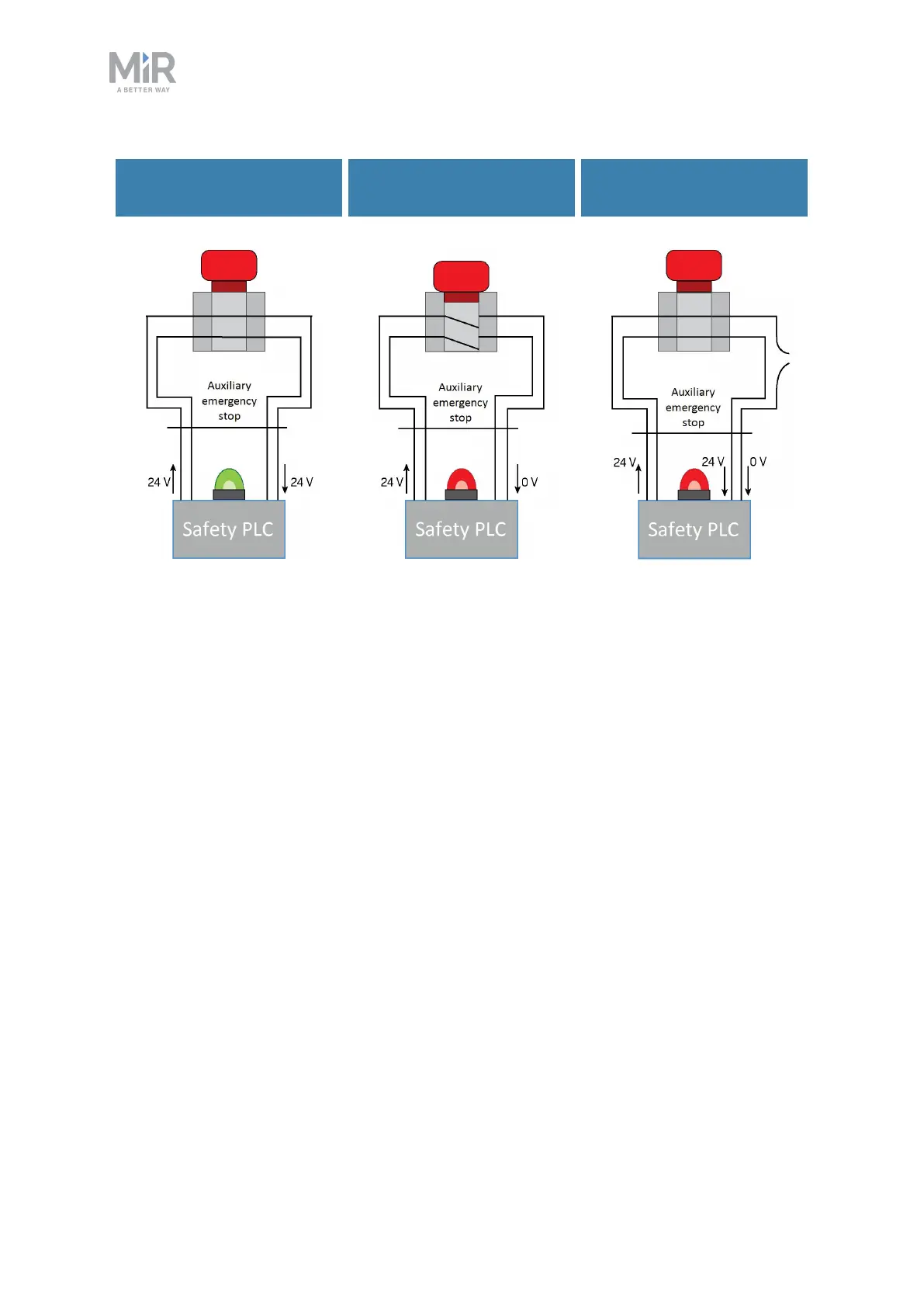 stop button, both pins deliver 0 V, and the robot enters Emergency stop. If the pins do not deliver the same