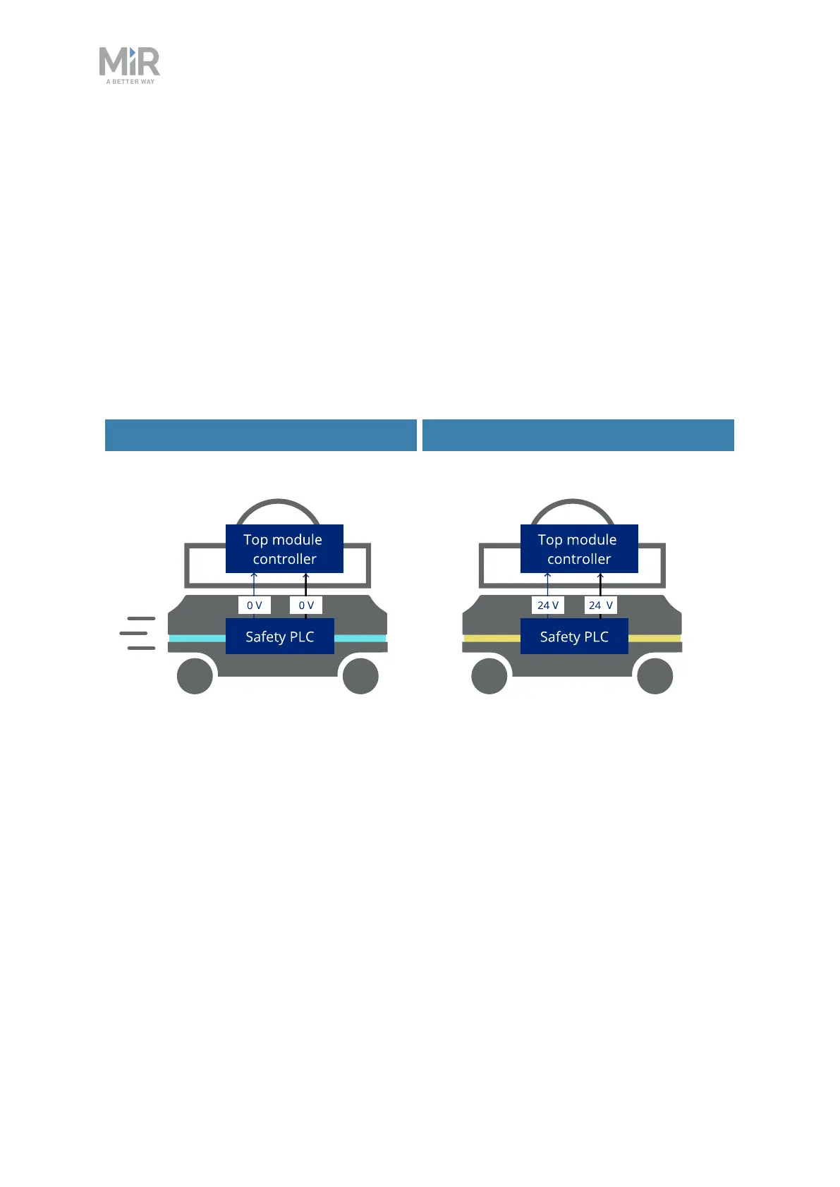 Figure 10.10. When the robot is driving, the safety PLC sends a 0 V signal to the top module