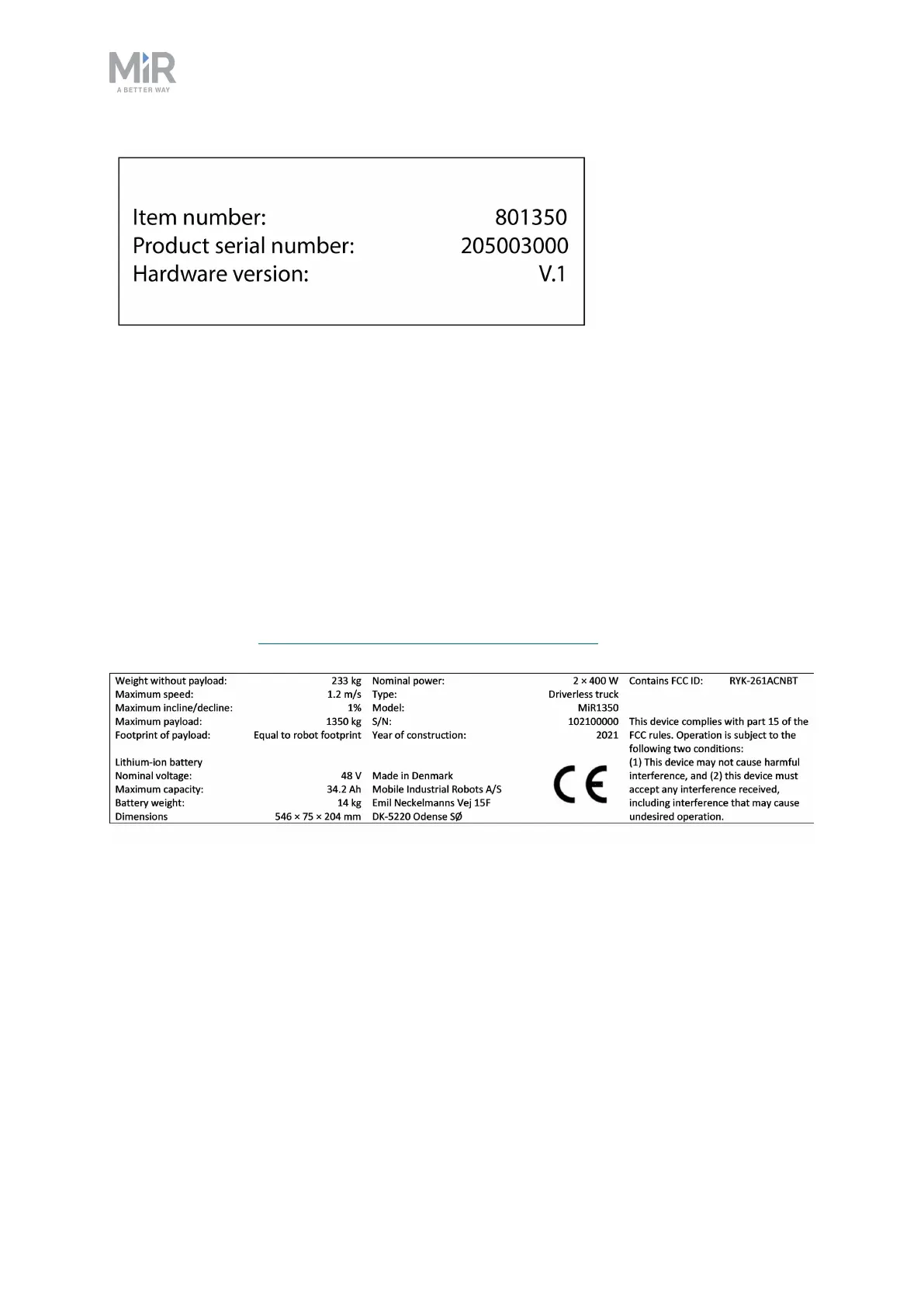 Figure 2.3. Example of a MiR1350 identification label.
