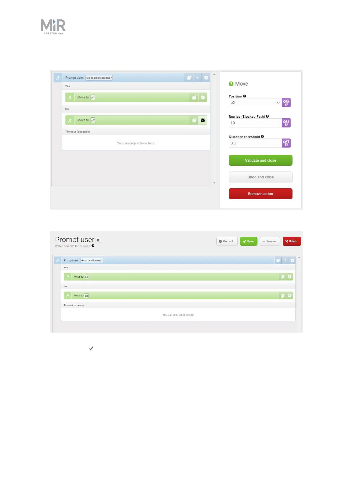 7. In the second Move to action, under Position, select p2.