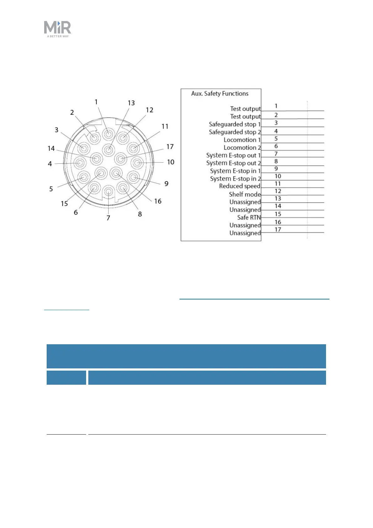 Table 17.5 contains the description of the pins of the Auxiliary safety functions