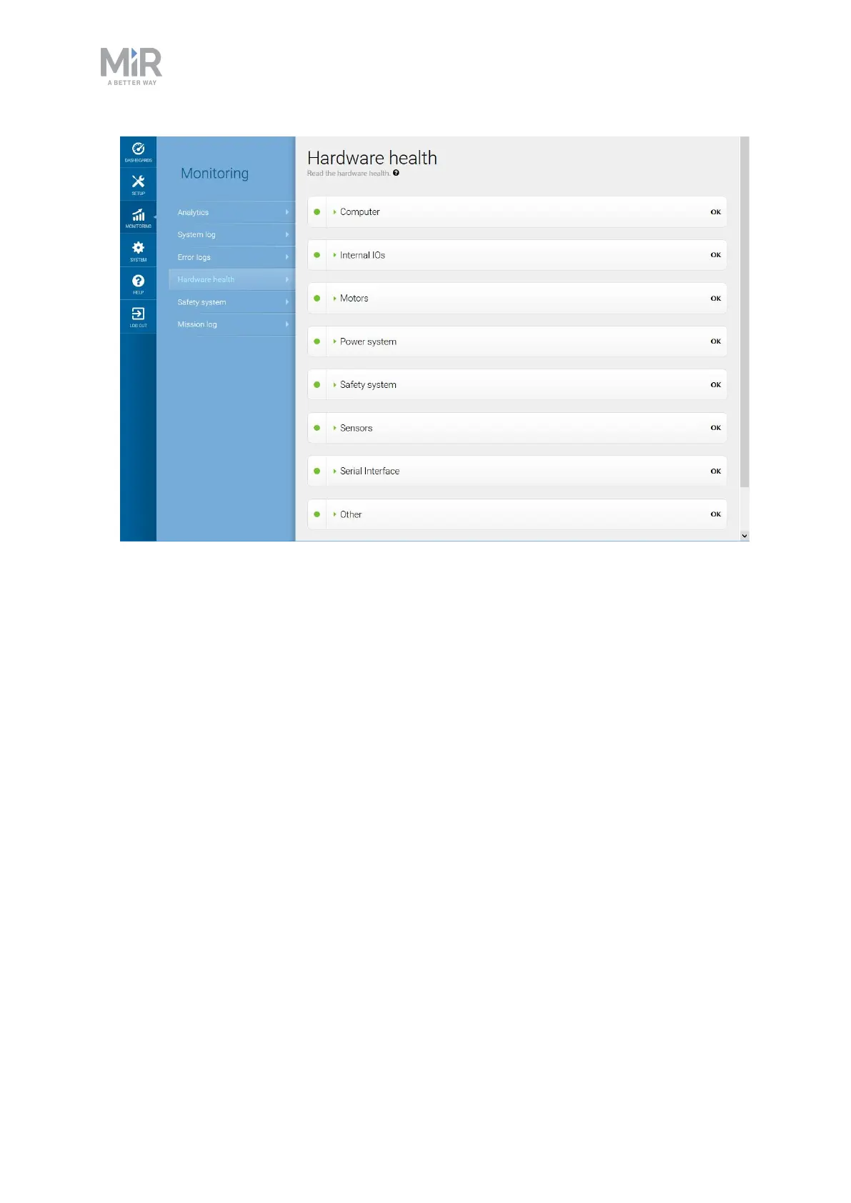 For further troubleshooting, contact your distributor for the MiR