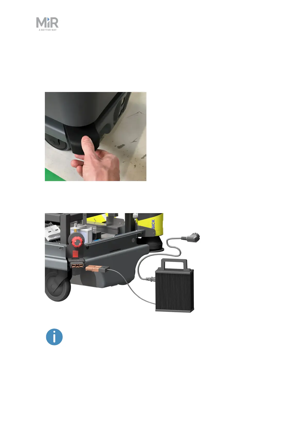 To charge MiR200 using the cable charger, connect the cable charger to the charging