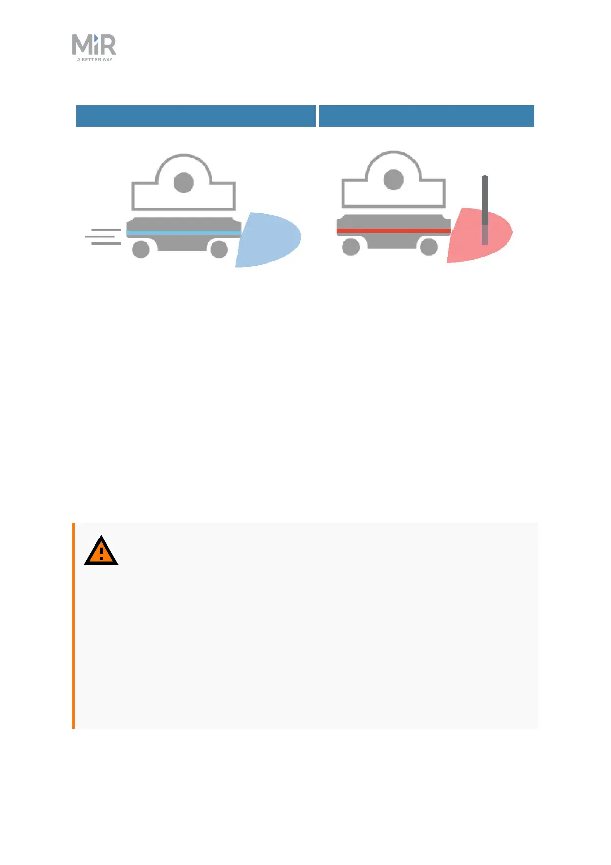MiR200. Modifications may prevent the robot from stopping in time to avoid