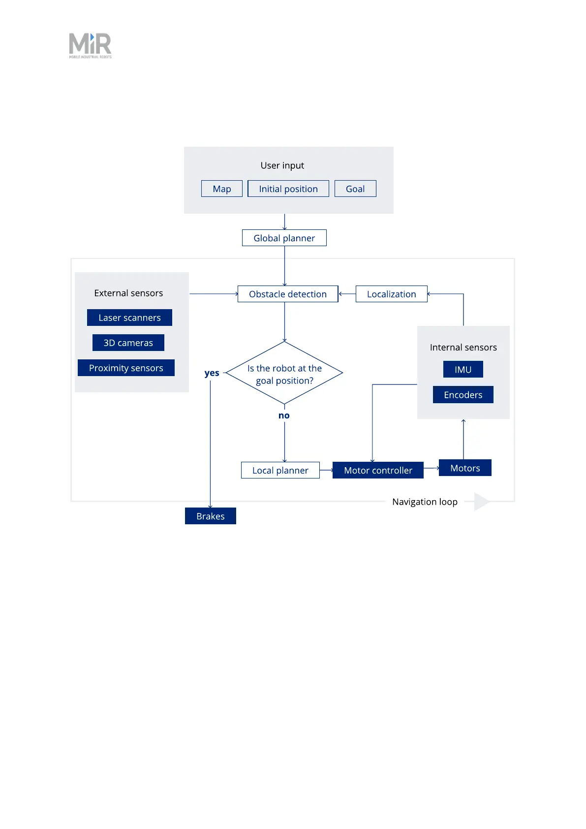 robot to generate a path to the goal position. The robot executes the steps in the navigation loop until it