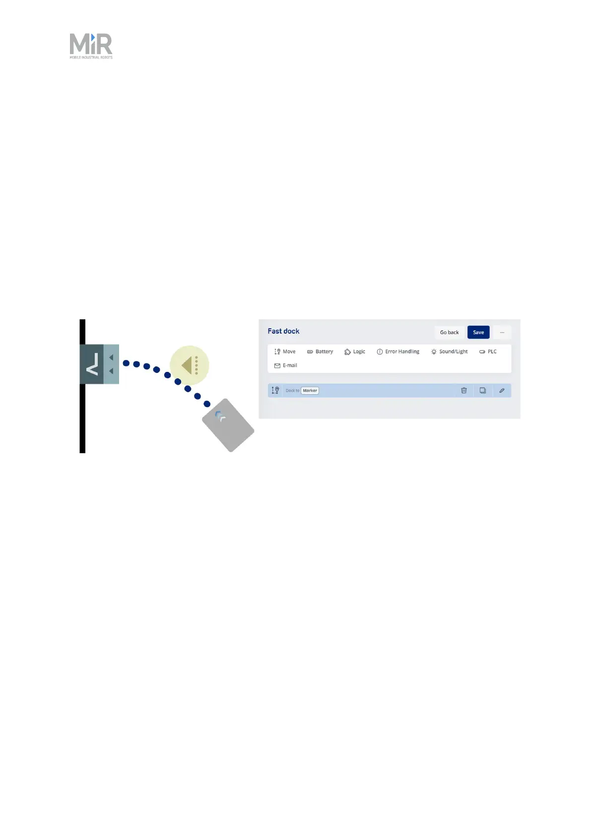 Figure 12.12 Illustration of how the robot Fast docks when the mission only uses a Dock to action.