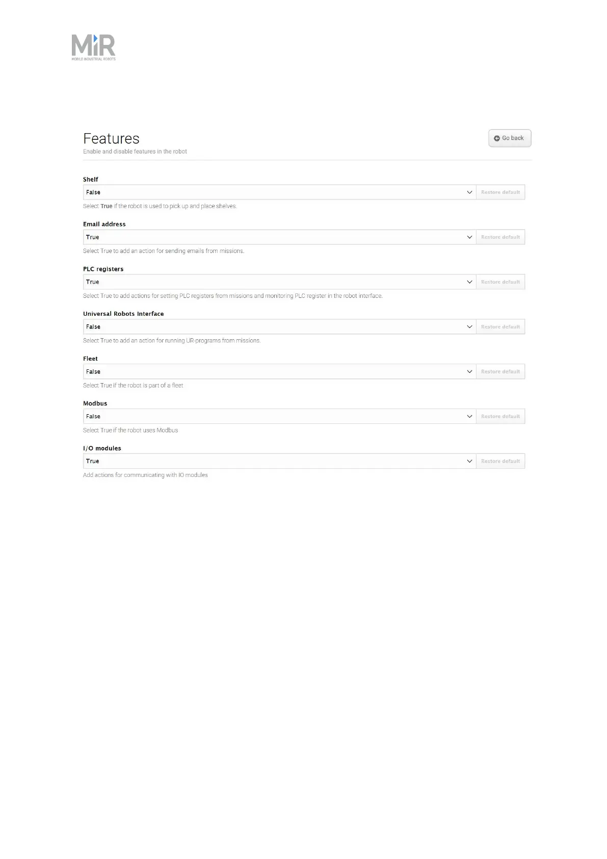 Figure 12.31 Disable and enable robot features in the Features section.