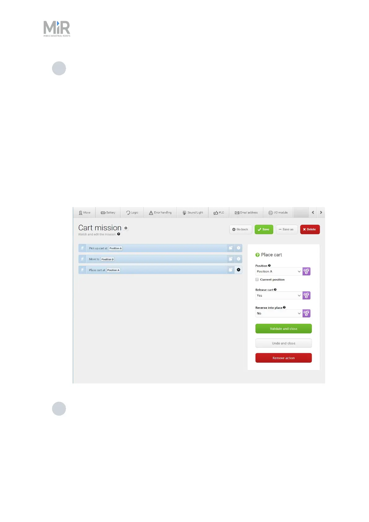 • Release cart: Select Yes to make MiR250 Hook release the cart and leave it at the