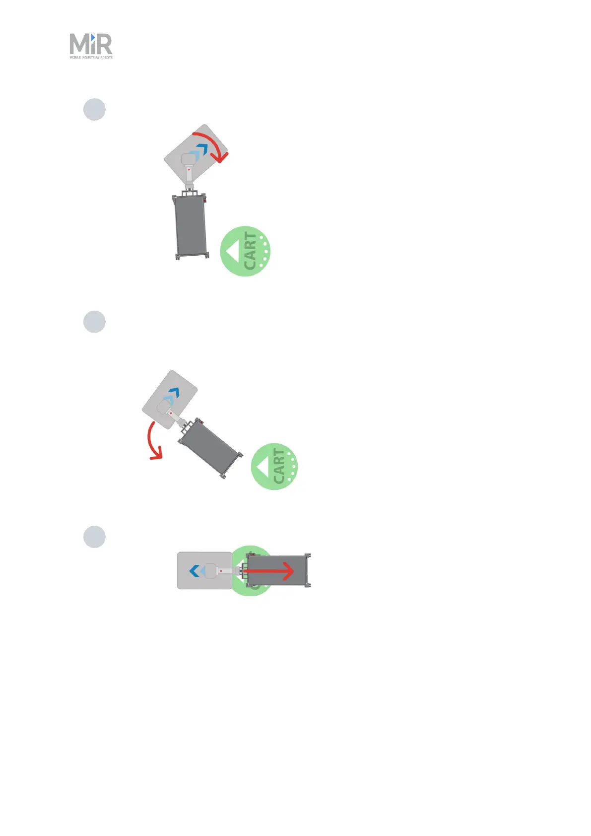 3 The robot pivots approximately 90° towards the Cart position.