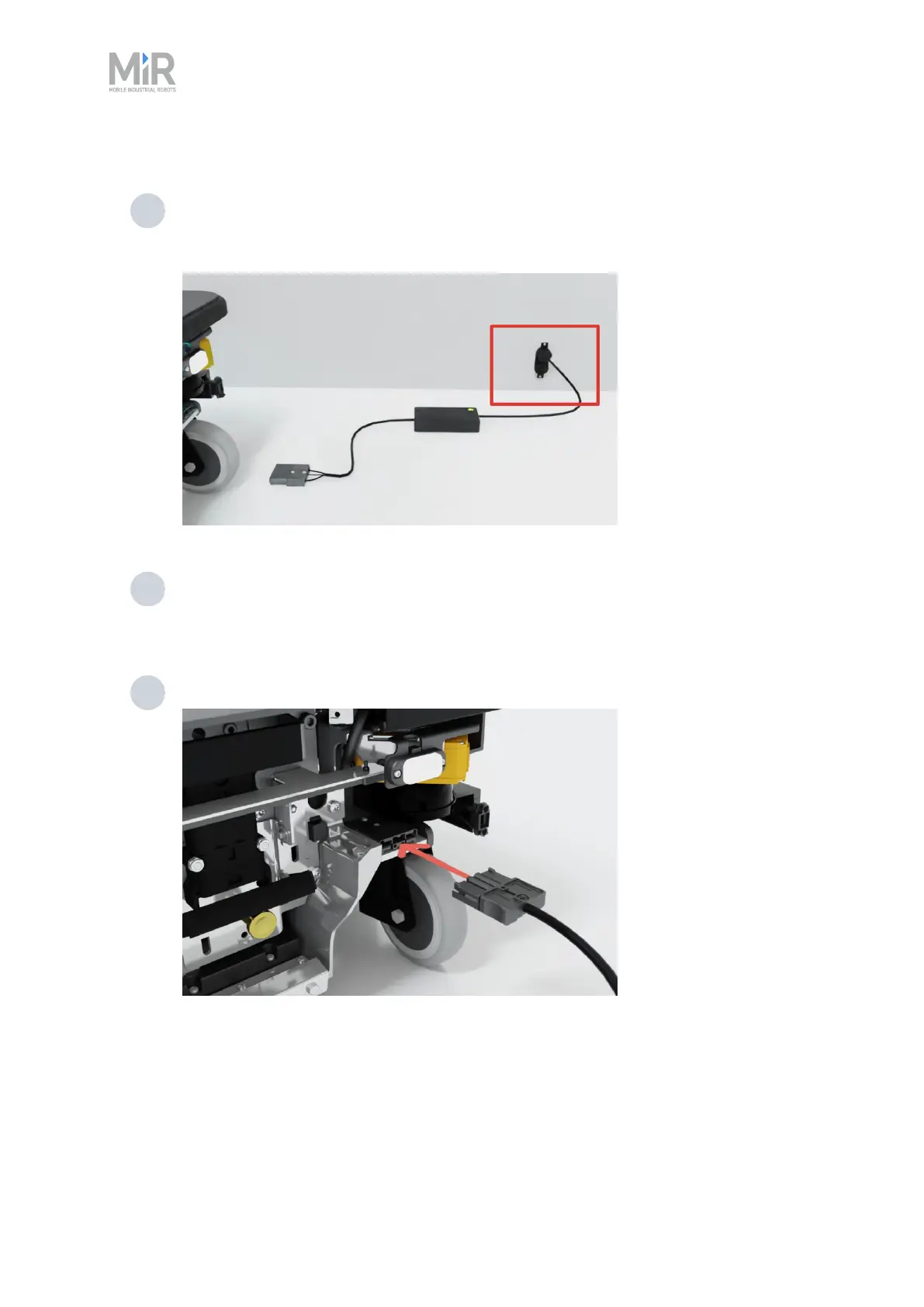 To charge MiR250 Hook using the cable charger, follow these steps: