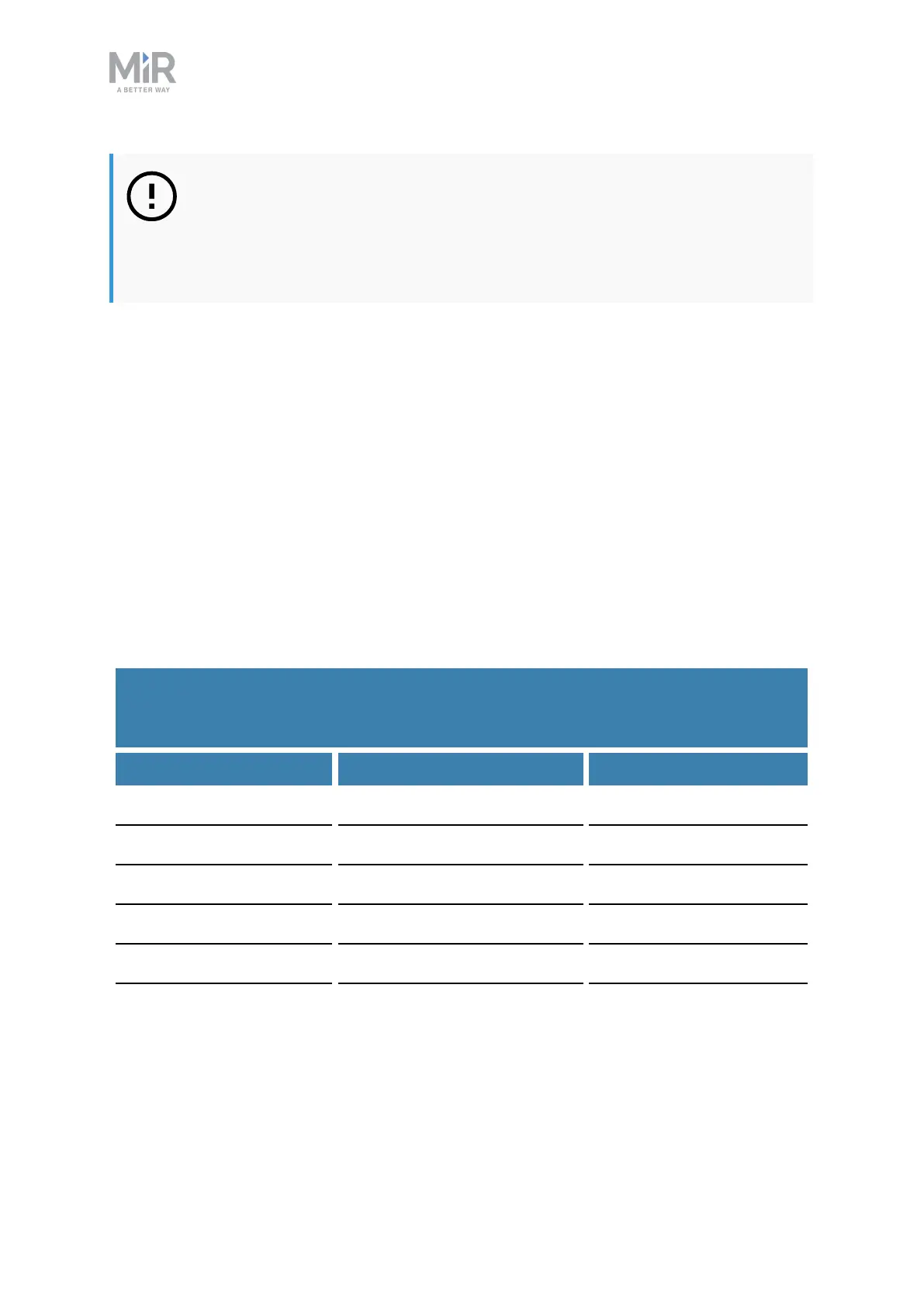 MiR250 User Guide (en) 11/2020 - v.1.3 ©Copyright 2020: Mobile Industrial Robots A/S. 65