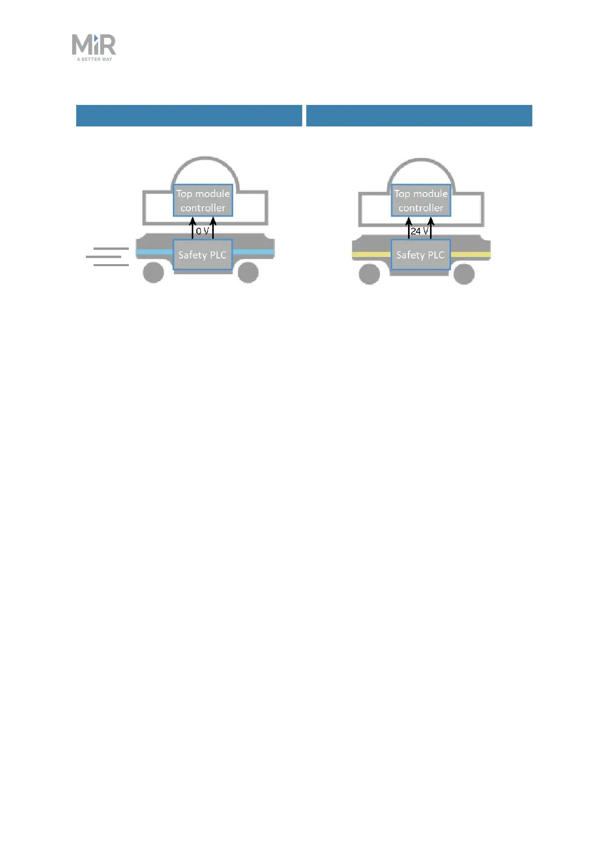 Figure 10.9. When the robot is driving, the safety PLC sends a 0 V signal to the top module through the Auxiliary