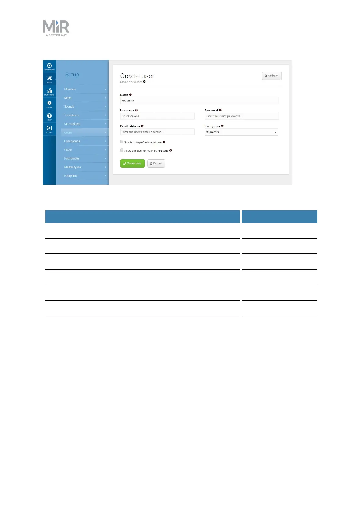 MiR500 User guide (en) 09/2019 - v.1.3 ©Copyright 2018-2020: Mobile Industrial Robots A/S. 102