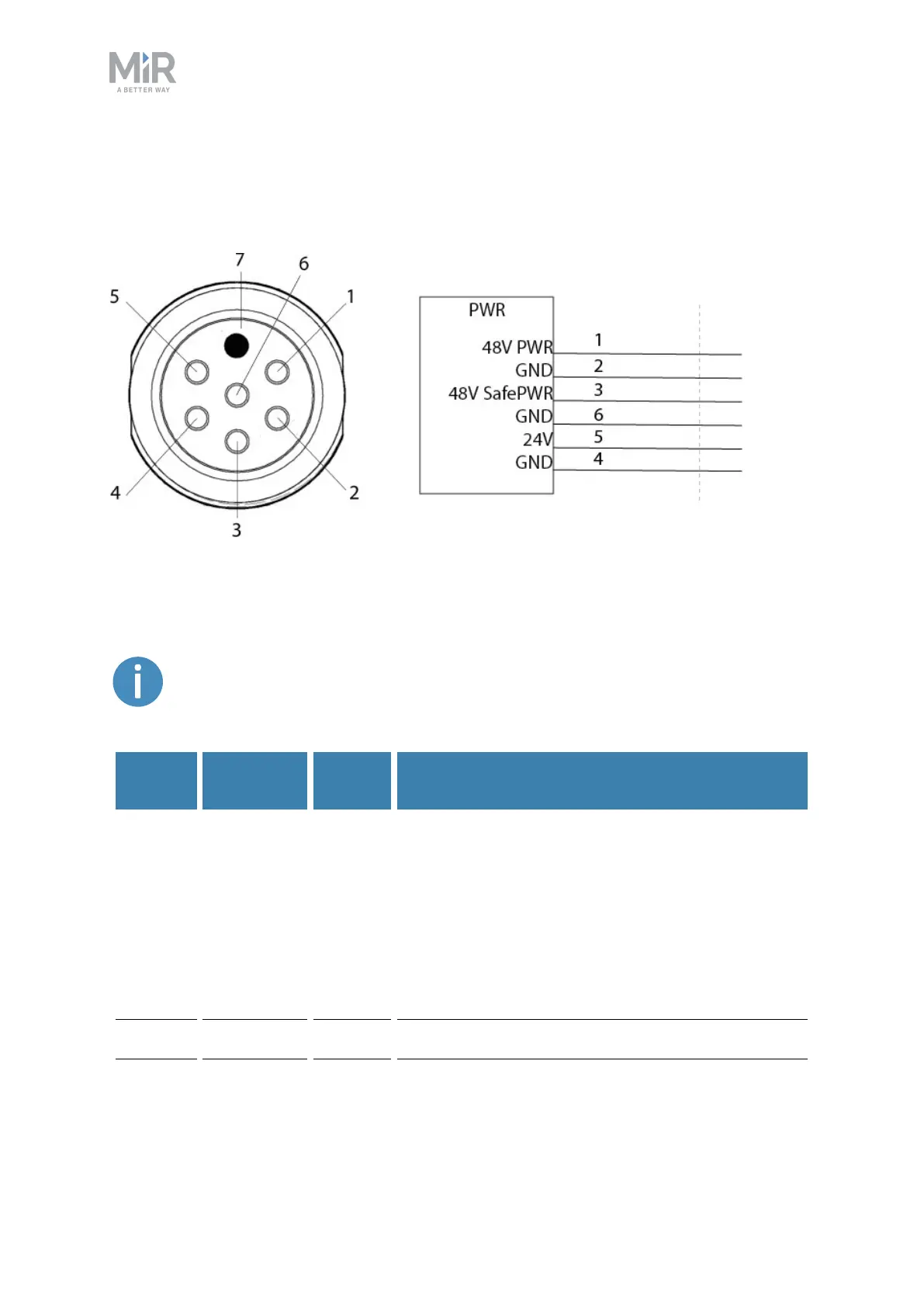 The following table contains the description of the pins of the Power interface.