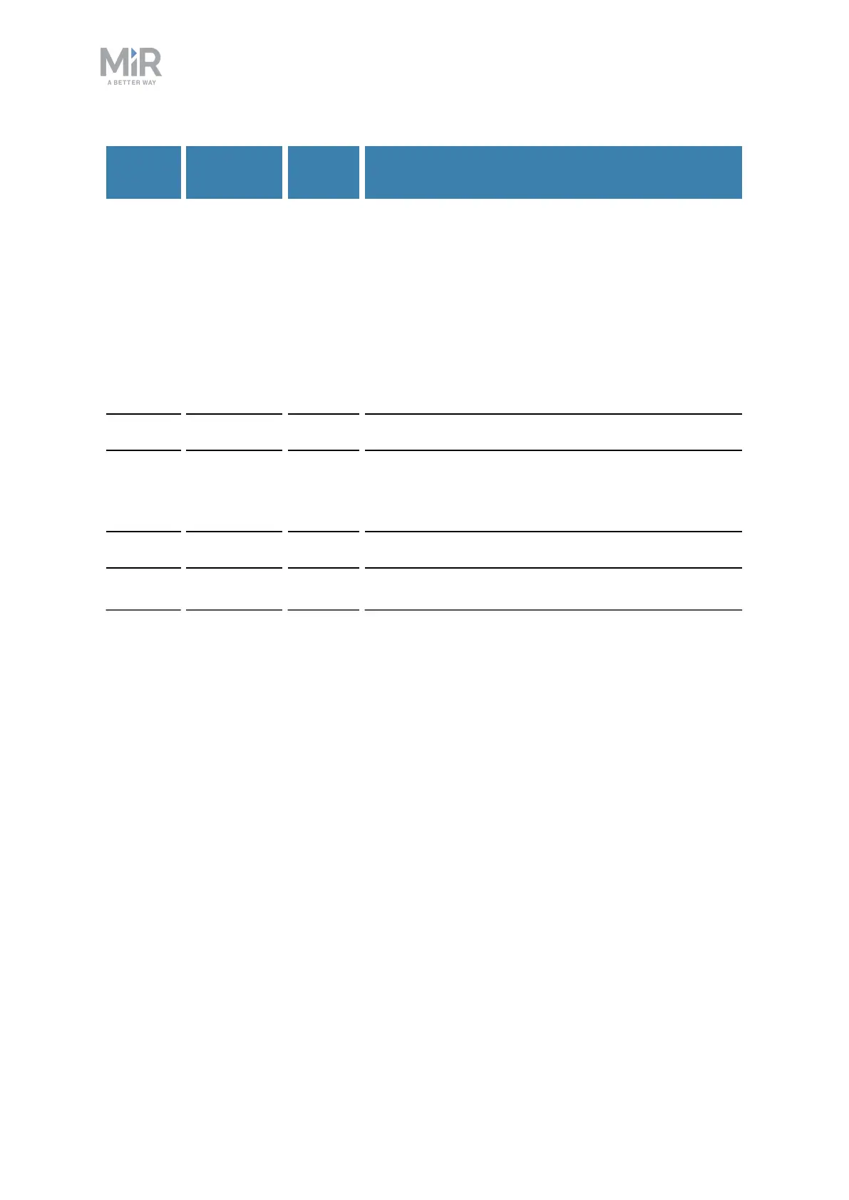 MiR500 User guide (en) 09/2019 - v.1.3 ©Copyright 2018-2020: Mobile Industrial Robots A/S. 139