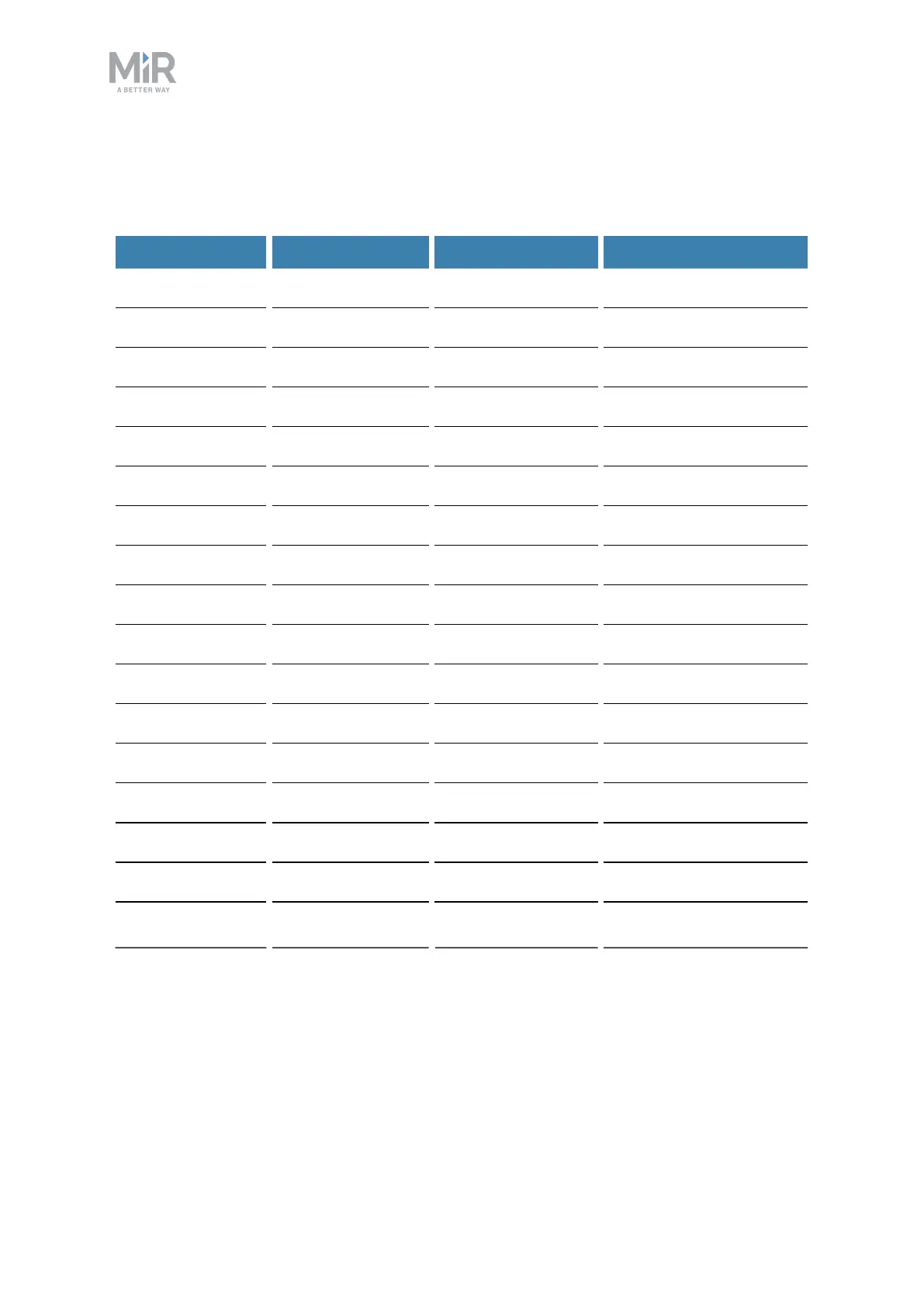 MiR500 User guide (en) 09/2019 - v.1.3 ©Copyright 2018-2020: Mobile Industrial Robots A/S. 143