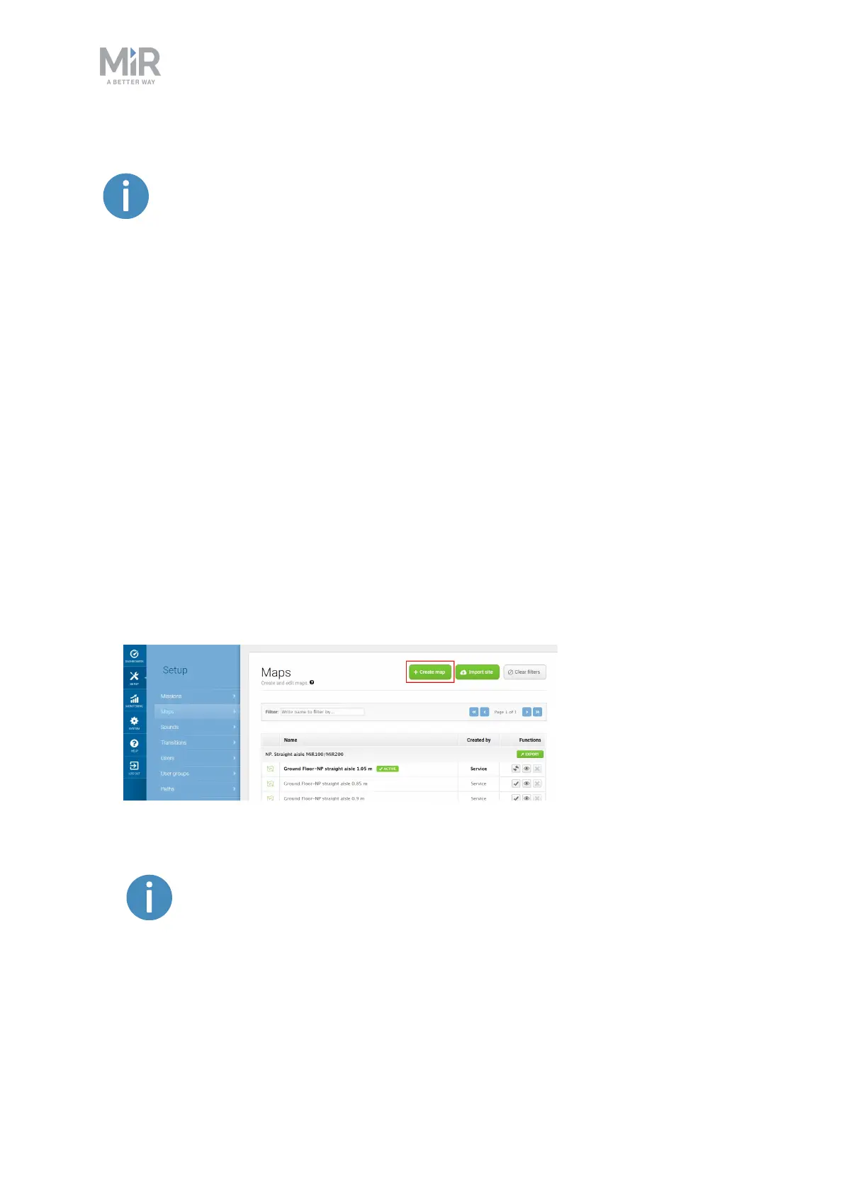 interface and the Creating your first map-course in MiRAcademy on the MiR