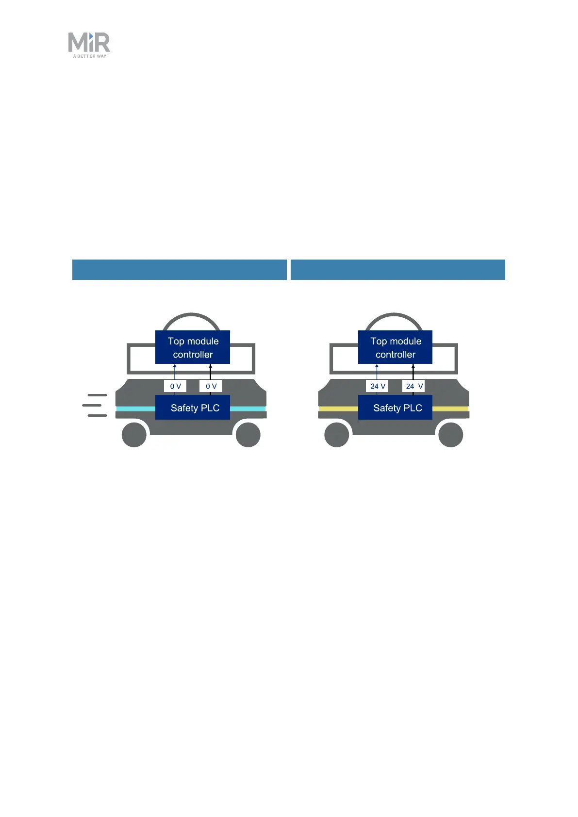 Figure 10.10. When the robot is driving, the safety PLC sends a 0 V signal to the top module through the