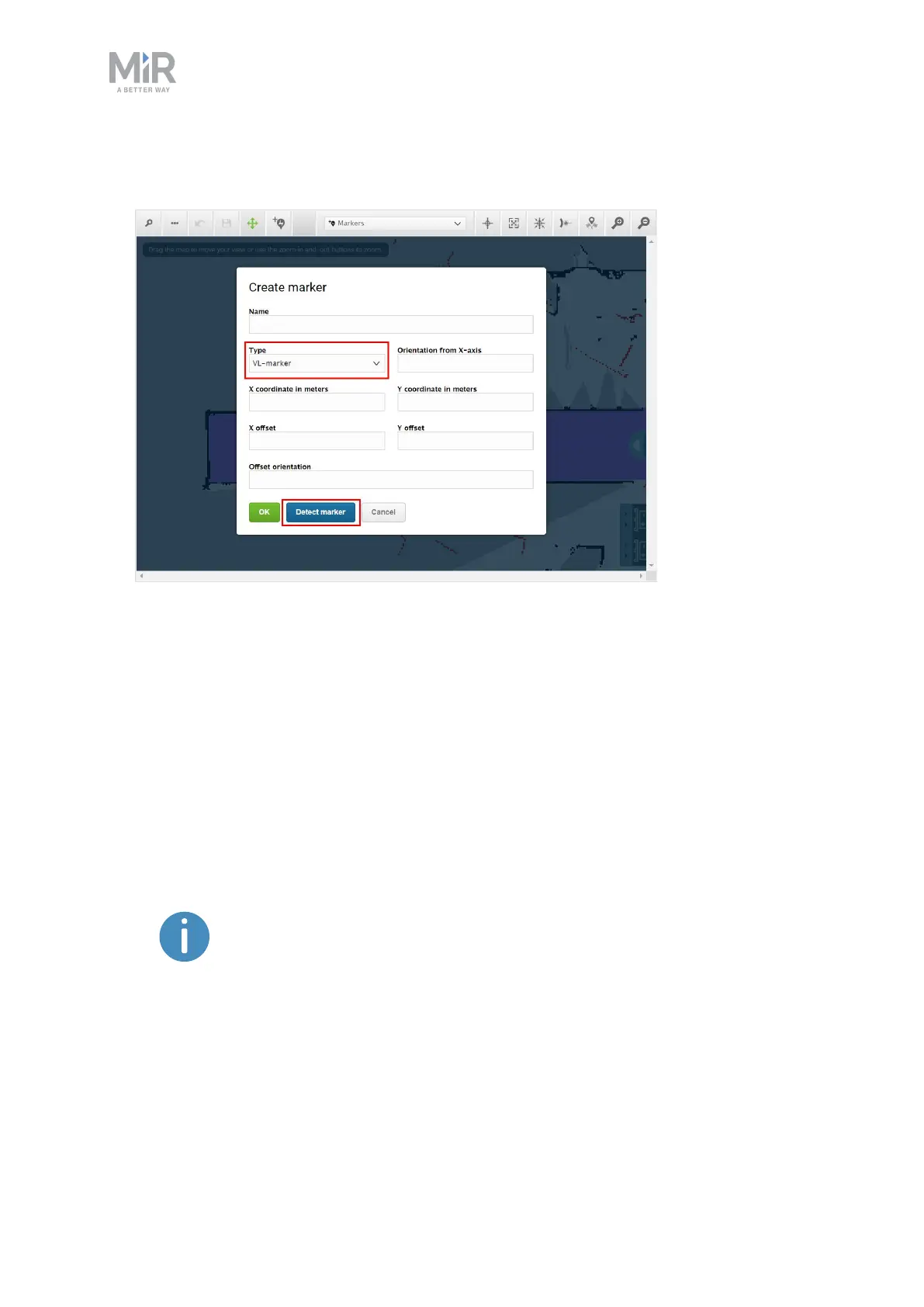 • If the robot cannot detect the marker, verify that the robot is correctly positioned and
