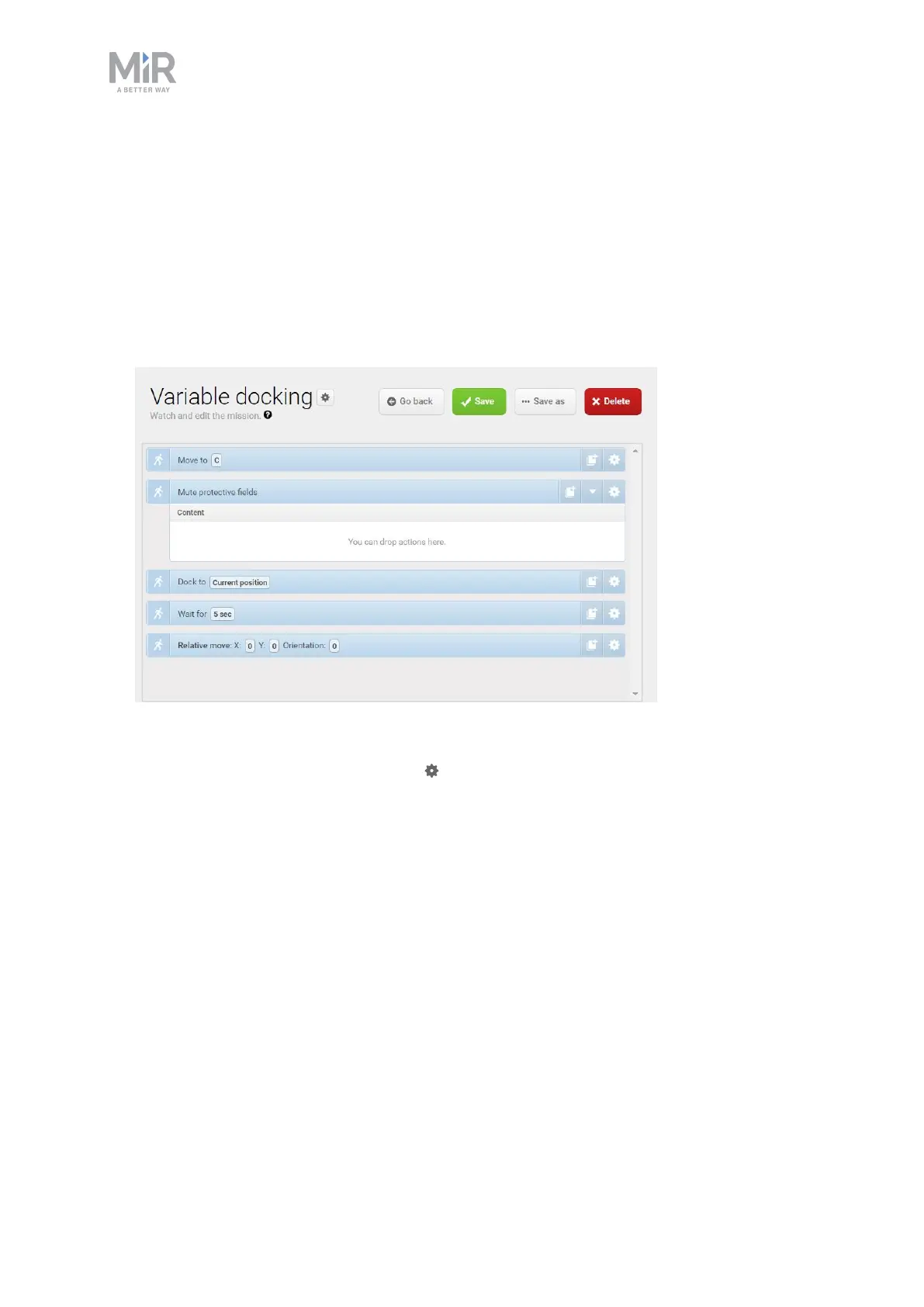 the parameters, select the gearwheel at the right end of the action line to open the