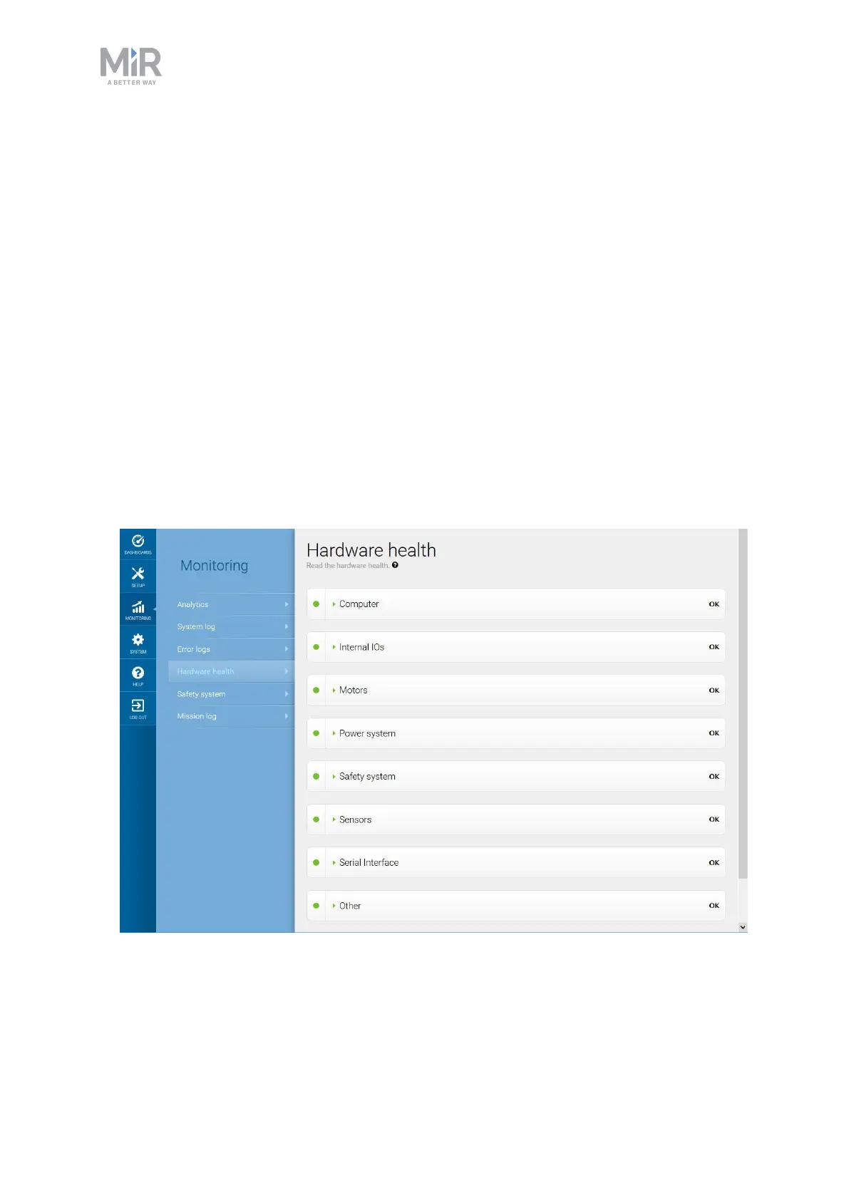 • Sign in to the robot interface and go to Monitoring >Hardware health. The interface