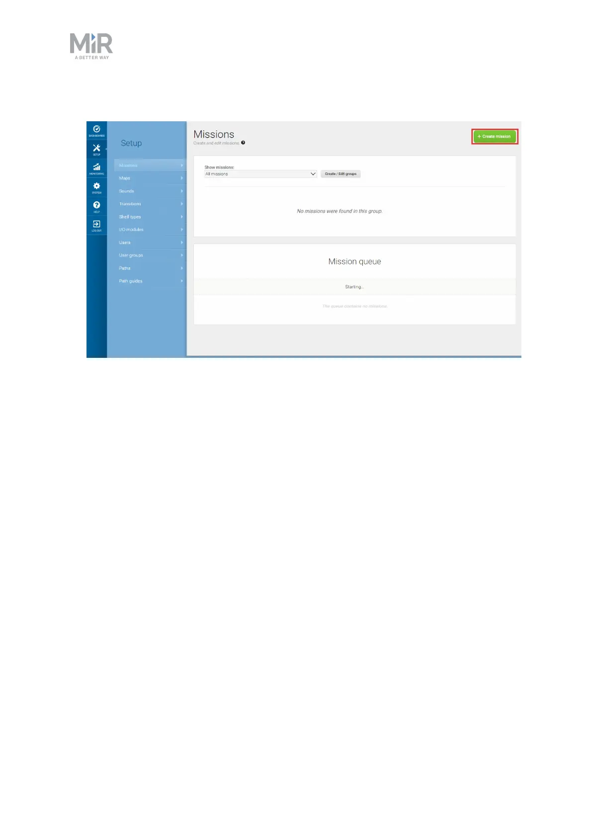 1. To create a new mission, go to Setup > Missions and select Create mission.