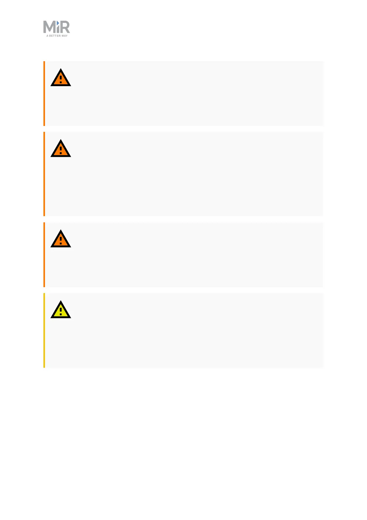 • Only use MiRCharge48V to charge MiR500/MiR1000 robots.