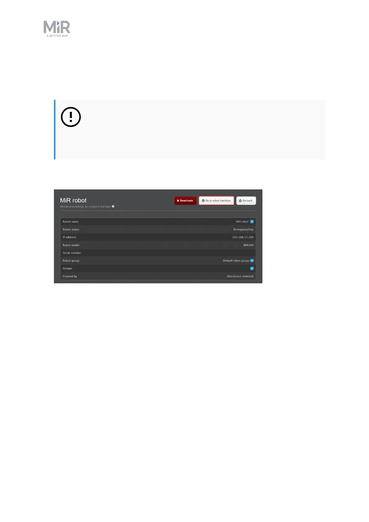 MiR Fleet PC Getting Started (en) 01/2021 - v.1.5 ©Copyright 2019-2021: Mobile Industrial Robots A/S. 26