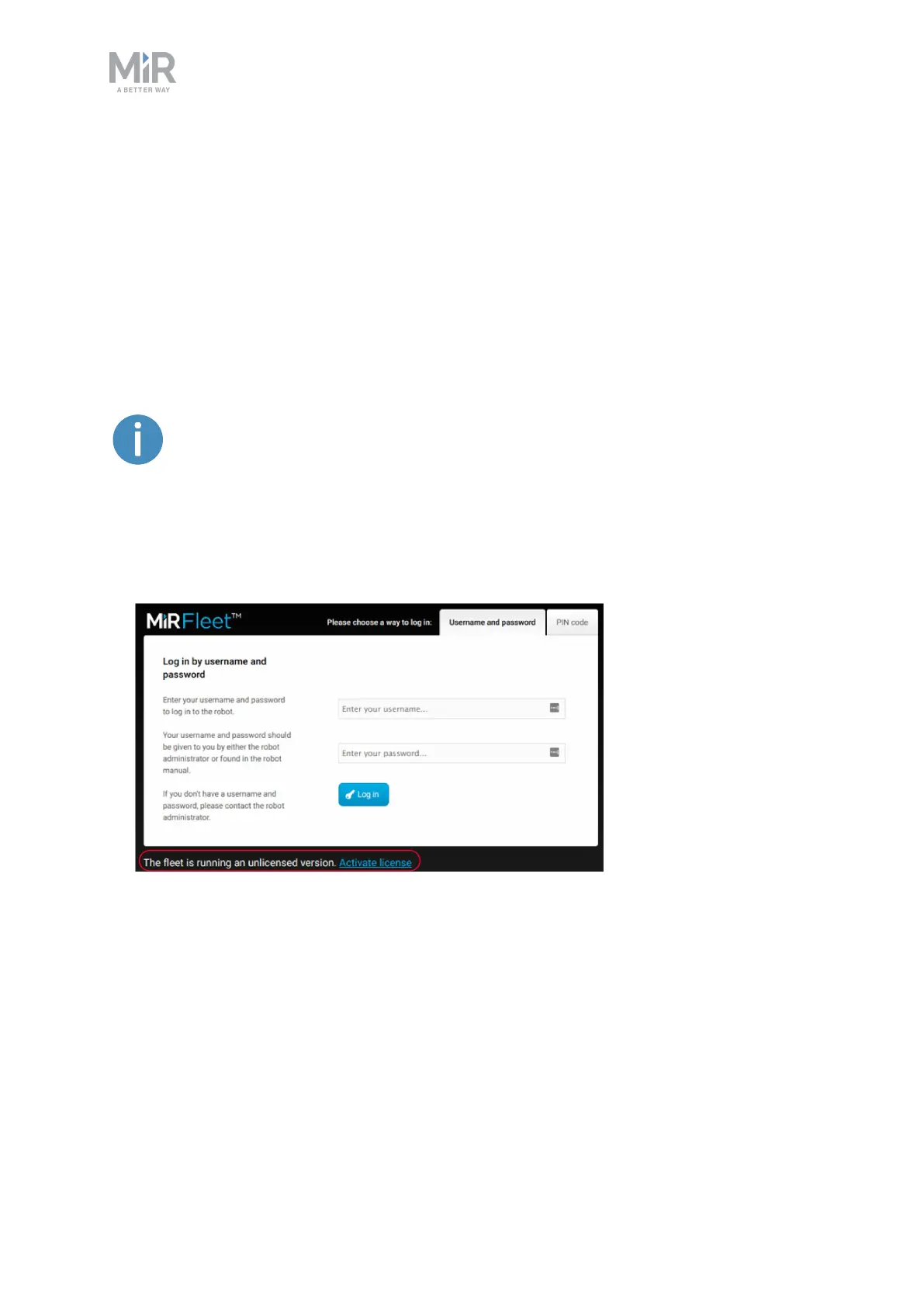 1. Go to the MiR Fleet sign in page, and select Activate license.