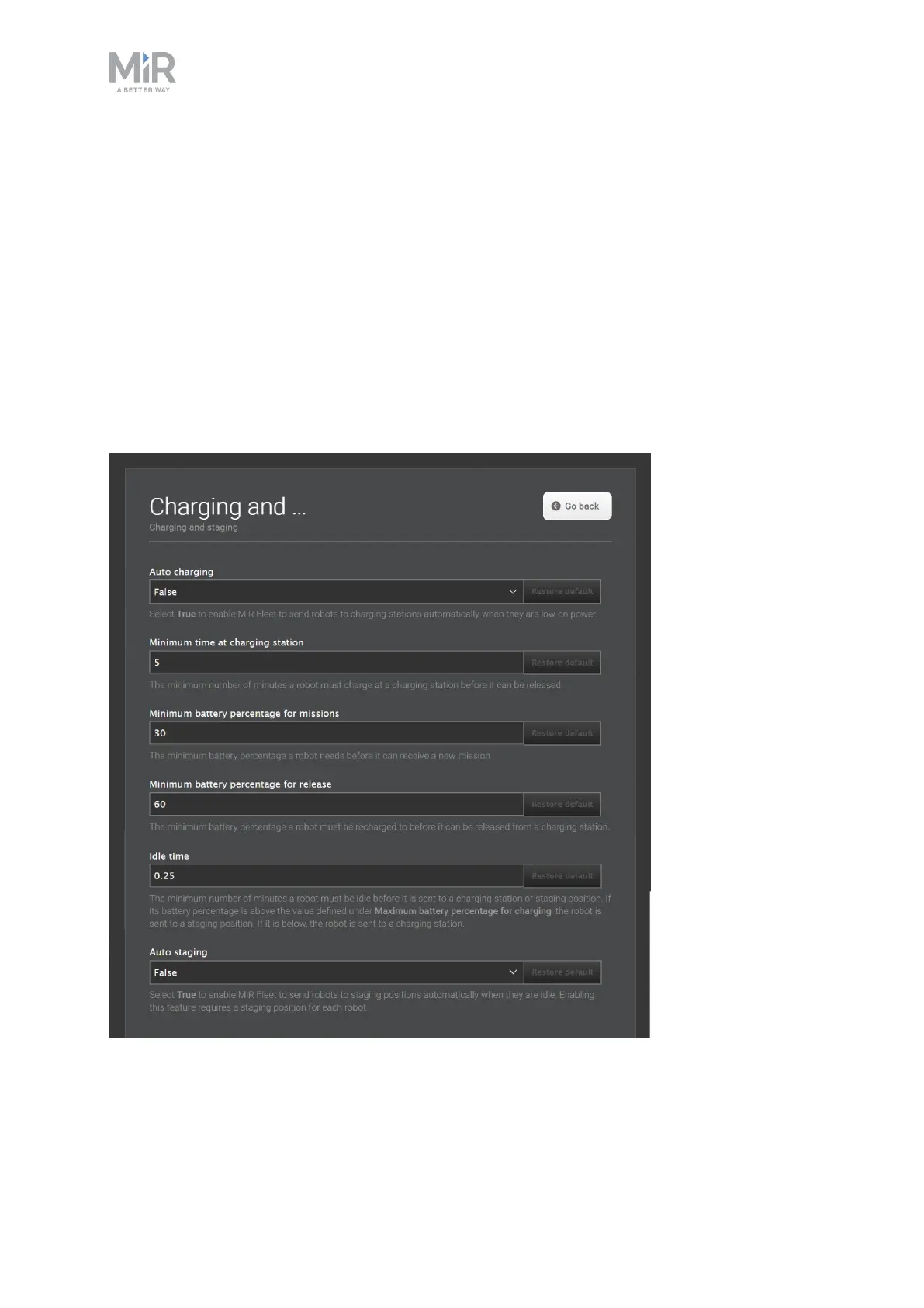 Select True to enable MiR Fleet to send robots to staging positions automatically when