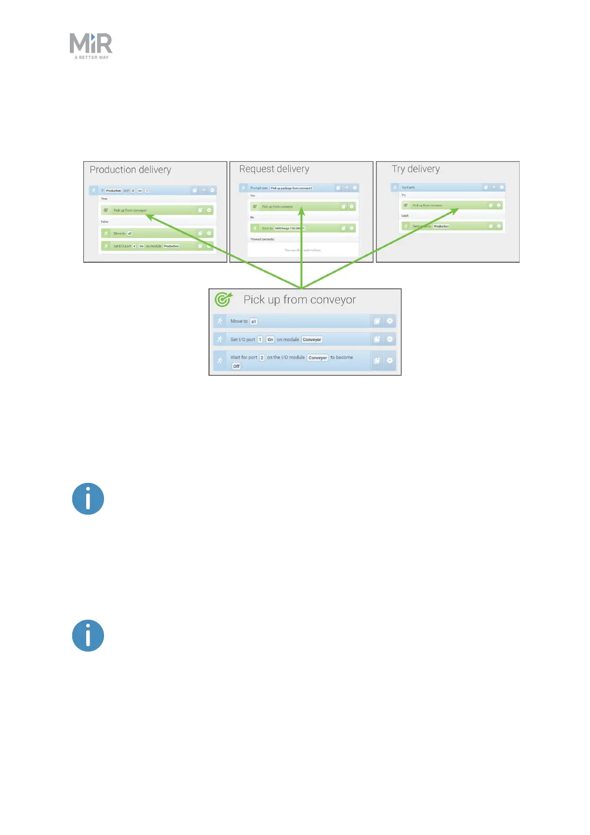 conveyor is used in three different missions. If you want to change how the robot picks up a package from