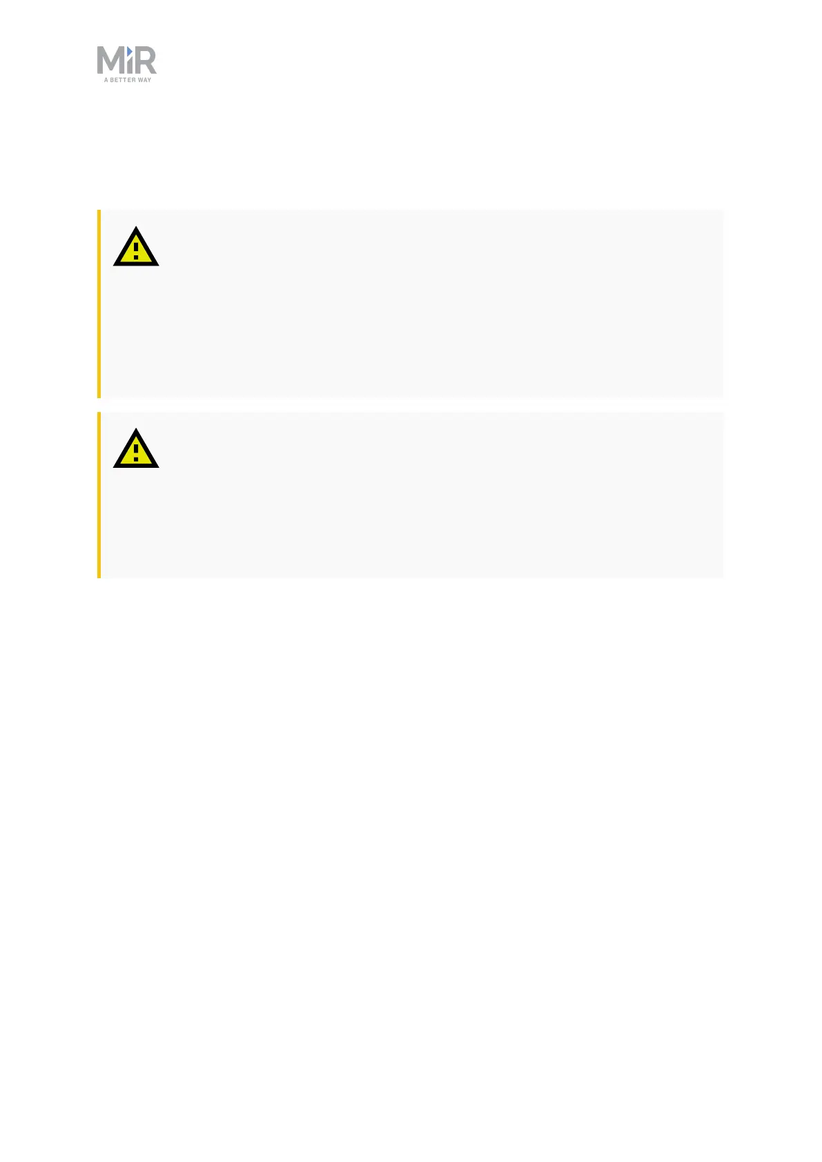 Risk of injury if a person is standing between MiR100/MiR200 and MiR