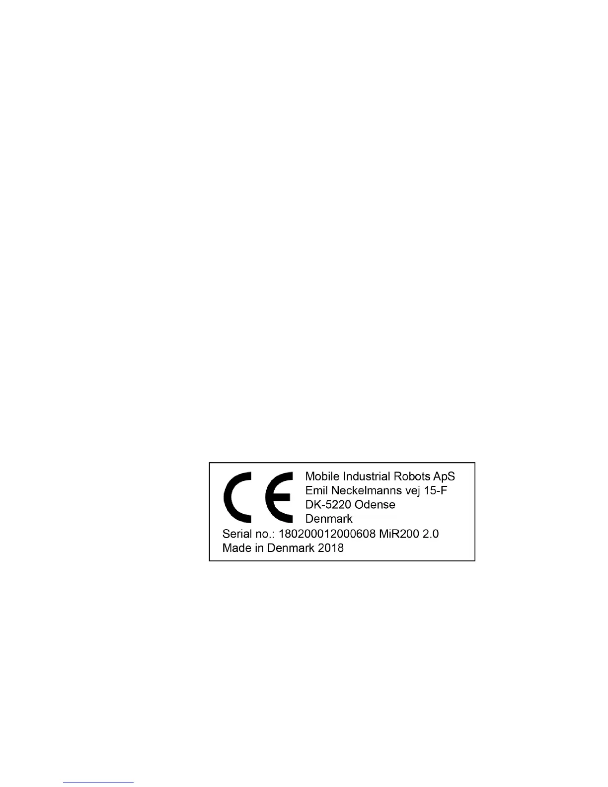 Figure 5.1. Example of MiR200™ CE marking and identification label