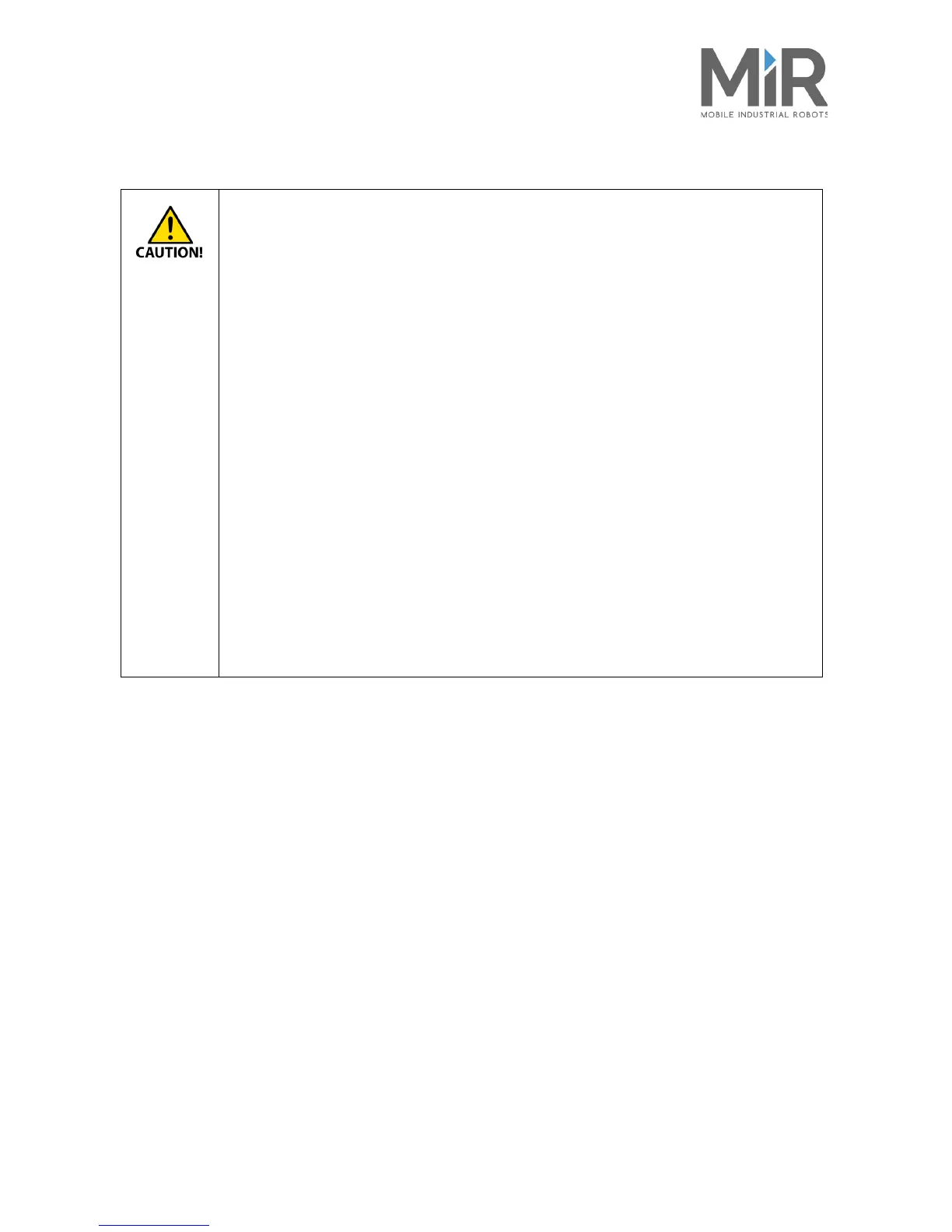 Risk of personal injury and/or damage to the robot.