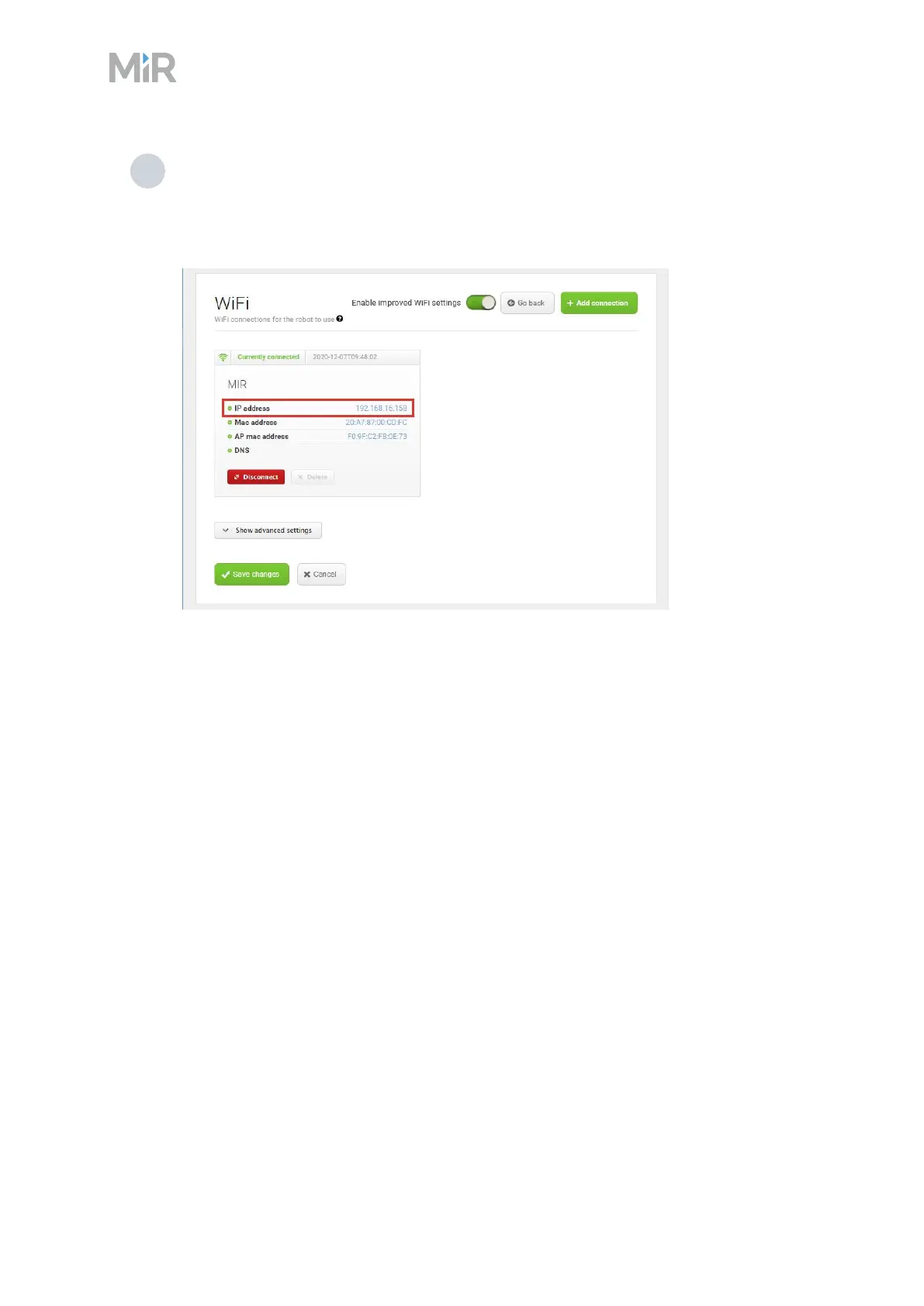 To disconnect the robot from a Wi-Fi network, select Disconnect.